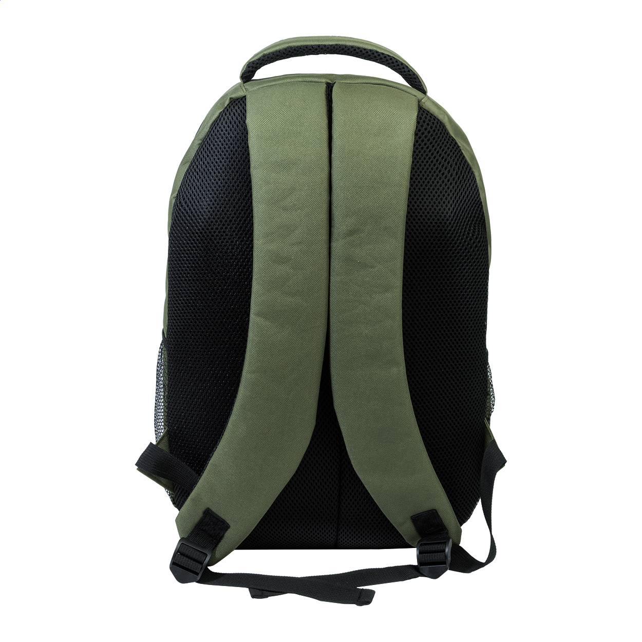 RPET outdoor backpack with zipped compartments and front pocket, padded laptop (15") compartment, mesh side pockets and elastic cords on the front. With padded back and shoulder straps. 600D RPET polyester, with distinctive RPET label.