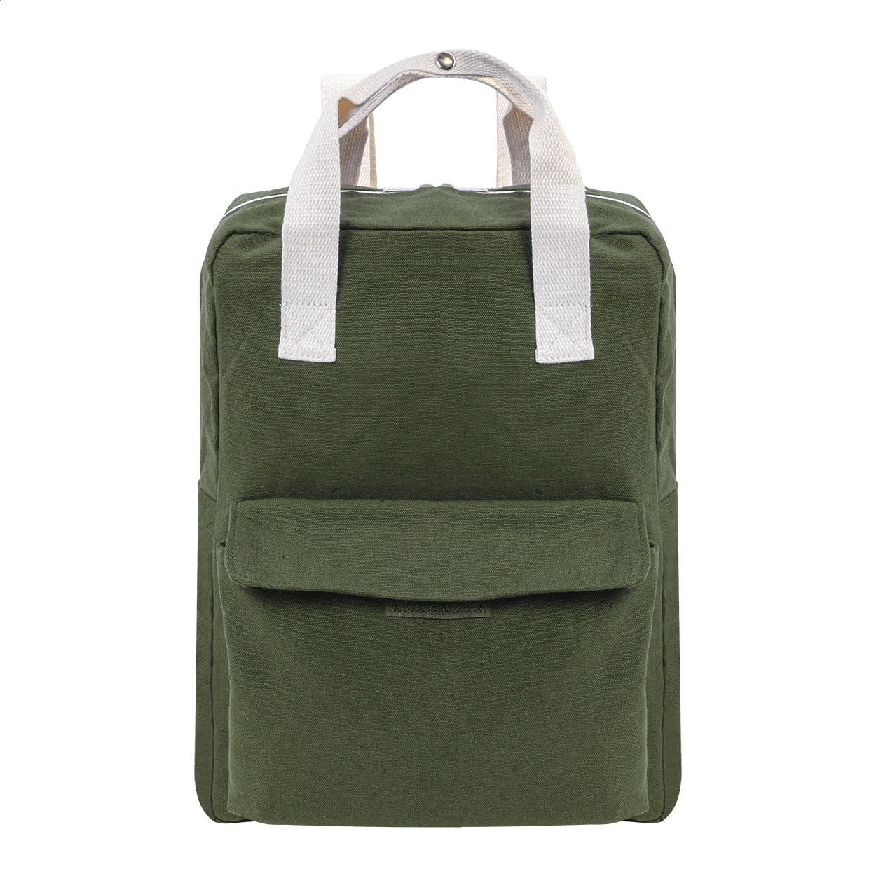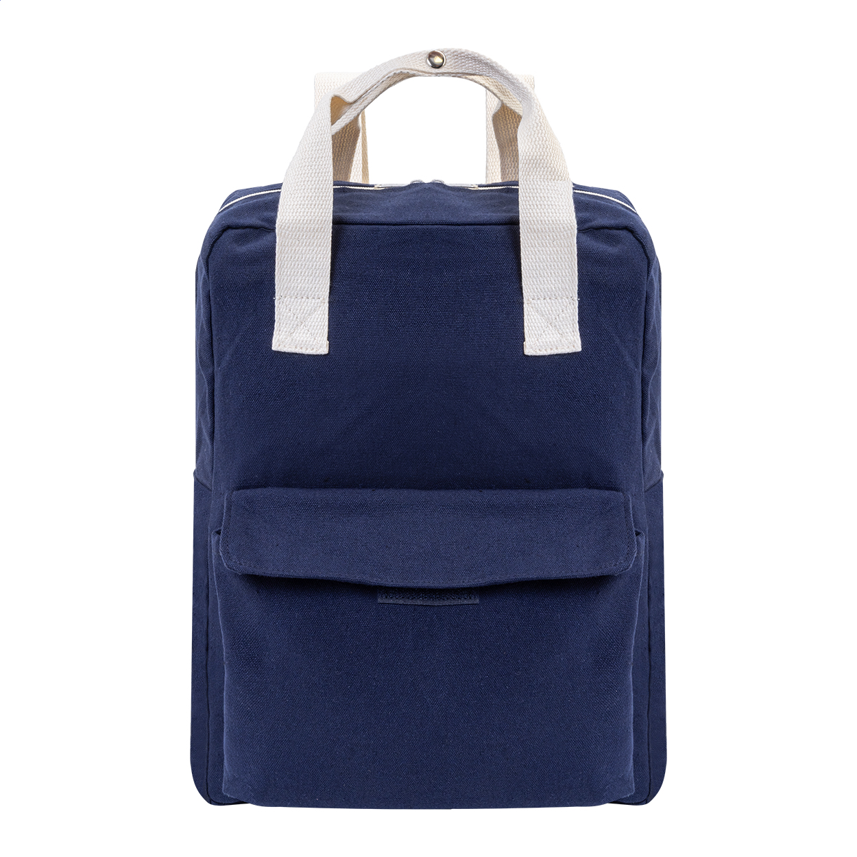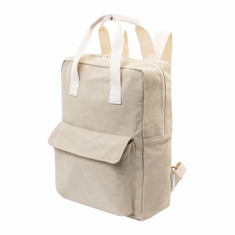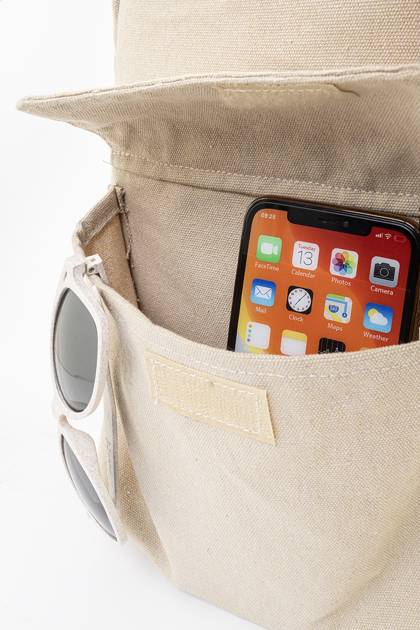 Recycled canvas backpack with zipped main compartment, padded laptop (13") compartment and velcro closure front pocket. 70% recycled cotton and 30% RPET polyester. With distinctive recycled cotton label.