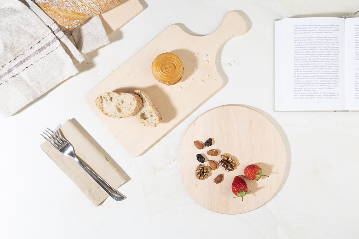 Cutting board with handle made from a single piece of natural alder wood. 100% natural and completely glue-free.