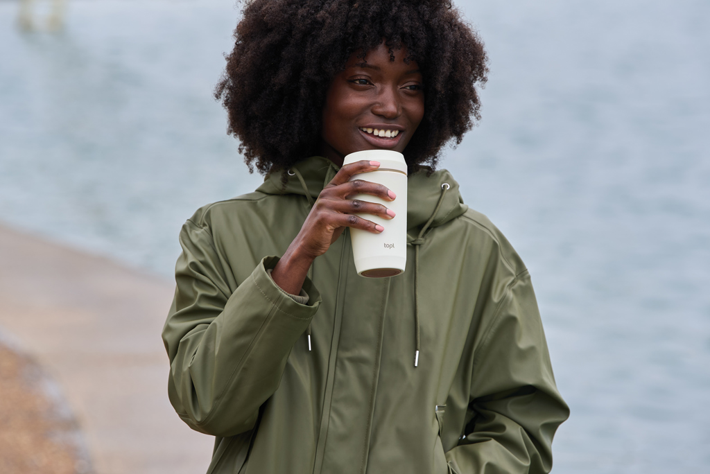 Experience sustainable convenience with the Topl lightweight Cup, featuring a RCS certified recycled plastic body and a size-perfect 12oz (354ml) capacity. Designed for coffee lovers. The patented 360° sip design lets you enjoy your drink from any angle, while the transparent lid keeps your beverage in sight. Lightweight yet robust, it’s your ideal companion for on-the-go moments.