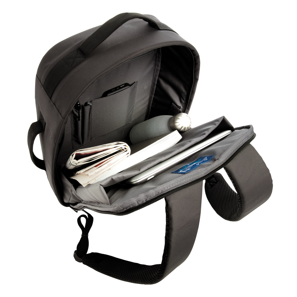 No greenwashing, but telling a true story about sustainability! This Impact collection is made with AWARE™ tracer. With AWARE™, the use of genuine recycled fabric materials and water reduction impact claims are guaranteed, by using the AWARE disruptive physical tracer and blockchain technology. Save water and use genuine recycled fabrics. If you choose this item you save 20 litres of water and 33 plastic bottles have been reused. With the focus on water, 2% of proceeds of each Impact product sold will be donated to Water.org. The AWARE™ deluxe 15.6" laptop backpack impresses with its modern and simple look. The clean design makes the backpack highly versatile and ideal for work or leisure. The roomy main compartment fits a 15.6 inch laptop. The inside sleeve and zipper pockets keeps your small essentials organised. Interior and exterior 100% recycled polyester with AWARE™ tracer. PVC free.Impact savings are based on reliable LCA data from the Textile Exchange.