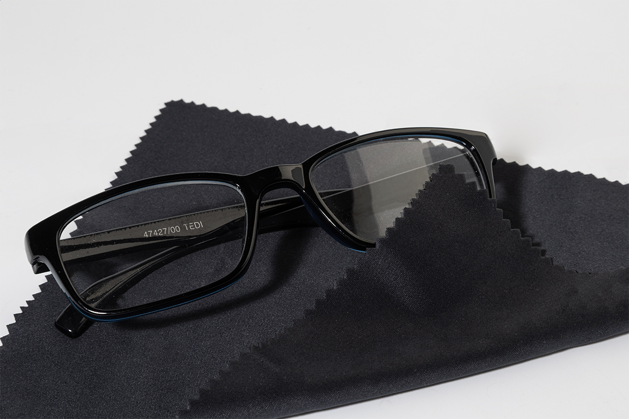 Compact glasses repair kit in transparent PP box. Including 100% RPET microfibre (220 g/m²) cleaning cloth and mini screwdriver with keyring. Cloth size: 18×15 cm.