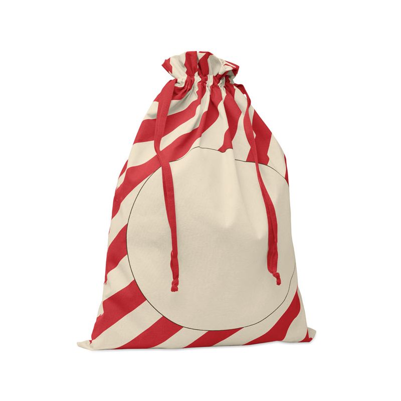 Large Santa draw cord bag in cotton. Size approx. 50x70 cm. 180 gr/m².