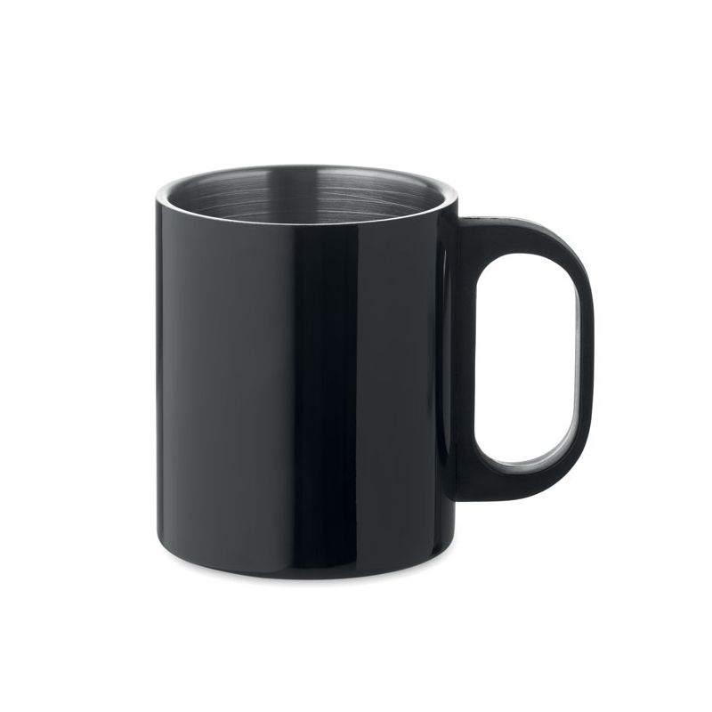 Double wall stainless steel mug with PP handle. Capacity: 300 ml.