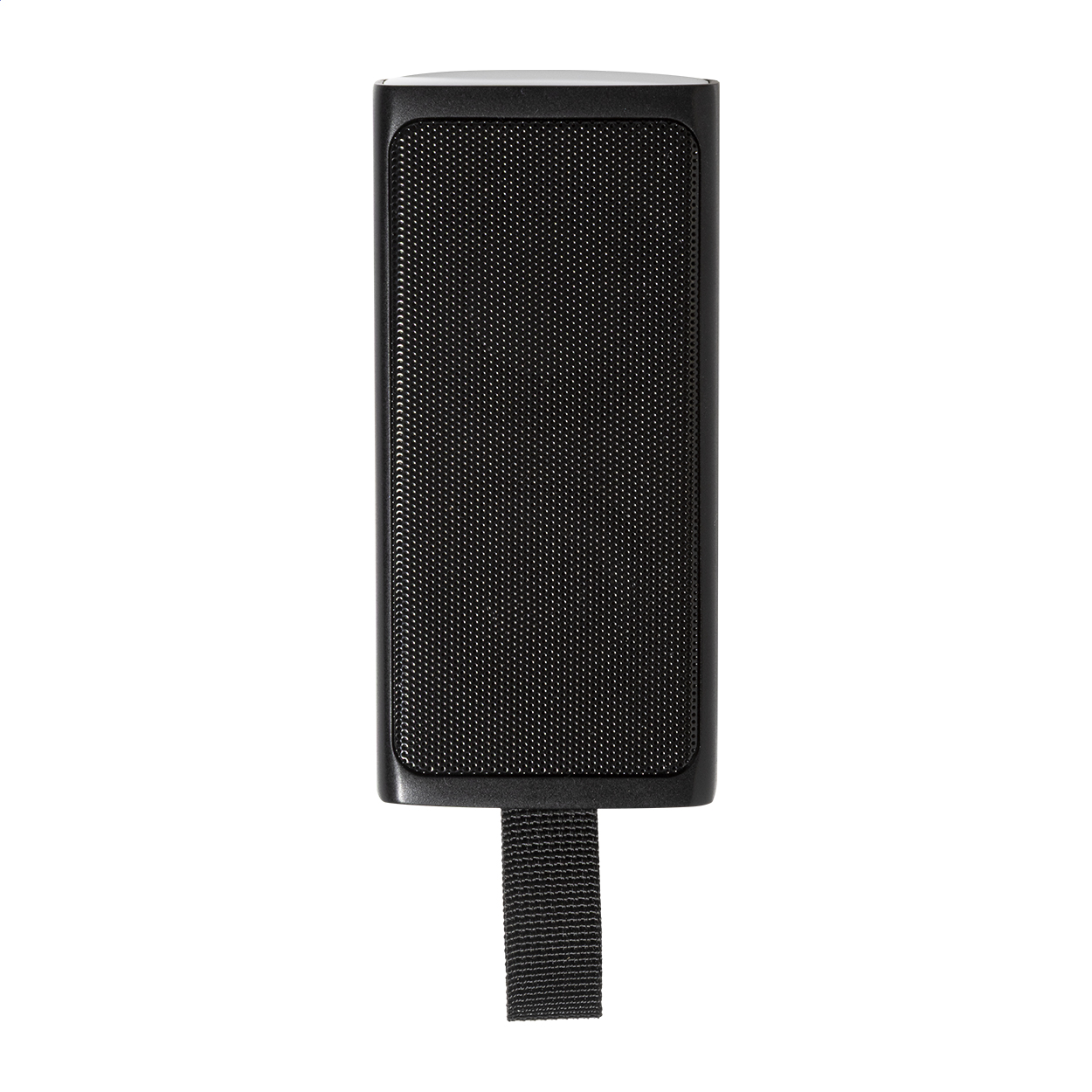 Recycled ABS wireless speaker with metal speaker mesh, LED flashlight and magnetic function. With built-in rechargeable battery (500 mAh). Including USB charger cable.