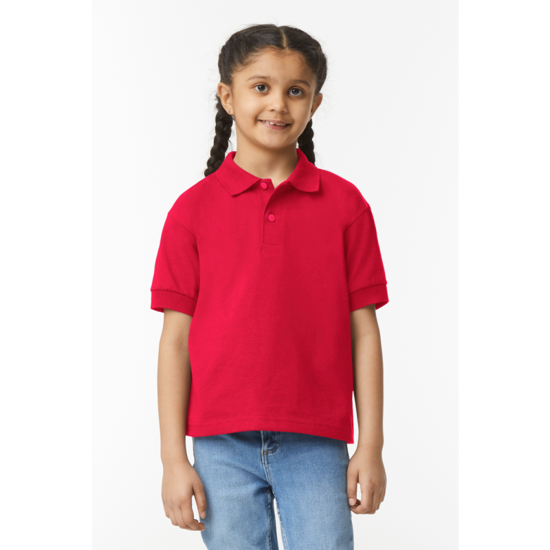 50% U.S. Cotton. 50% Polyester. 203.0 G/SqM (White 193.0 G/SqM);DryBlend's moisture-wicking fabric delivers both comfort and coolness;A decorator's favourite for team sports;Contoured welt collar and cuffs;Clean finished placket with dyed-to-match buttons;Classic fit. seamless body;High-performing tear-away label transitioning to recycled material;CPSIA Tracking Label Compliant;Click hereto download the GILDAN children's clothing size guide!;