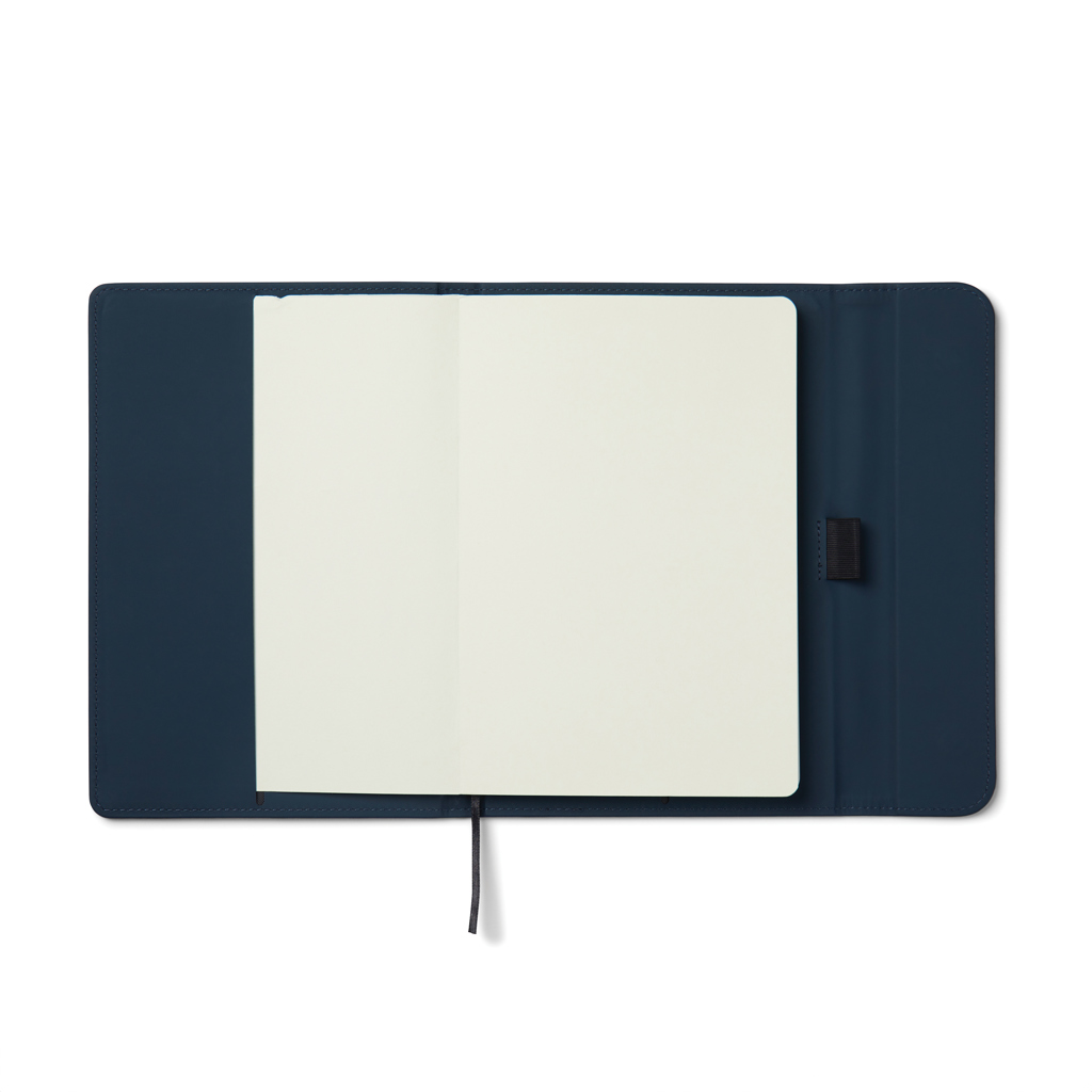 Sleek A5 notebook in a smooth touch. Its cover, crafted from 30% recycled matte PU, features a magnetic closure and an integrated pen holder. Within, 80 sheets/160 pages of 70 gsm lined recycled paper, suitable for all your note-taking needs. The paper insert can be replaced, allowing for prolonged use over time. Certified by GRS (Global Recycled Standard), GRS certification guarantees that the entire supply chain of the recycled materials is certified. The total recycled content is based on the overall product weight. This product contains 54% GRS-certified paper and 5% GRS-recycled PU.