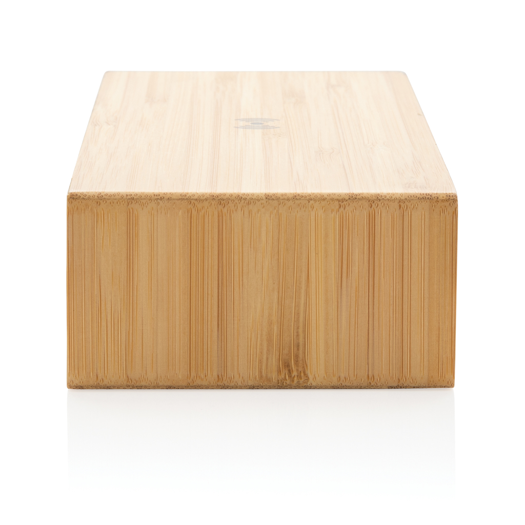 Budilica s bežičnim punjačem od 5 W s vanjskim dijelom od bambusa i 24-satnim indikatorom vremena. S USB priključkom na stražnjoj strani za punjenje putem kabela. Uključujući 150 cm TPE micro usb kabel bez PVC-a. Kompatibilan sa svim uređajima koji podržavaju QI kao što su najnovija generacija Androida, iPhone 8 i noviji Ulaz: 5 V/1,5 A; Bežični izlaz: 5V/1A - 5W; 1 USB izlazni priključak, 5V/1A.
