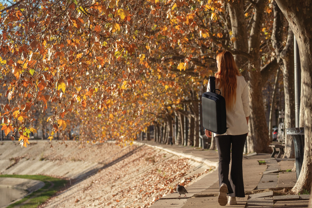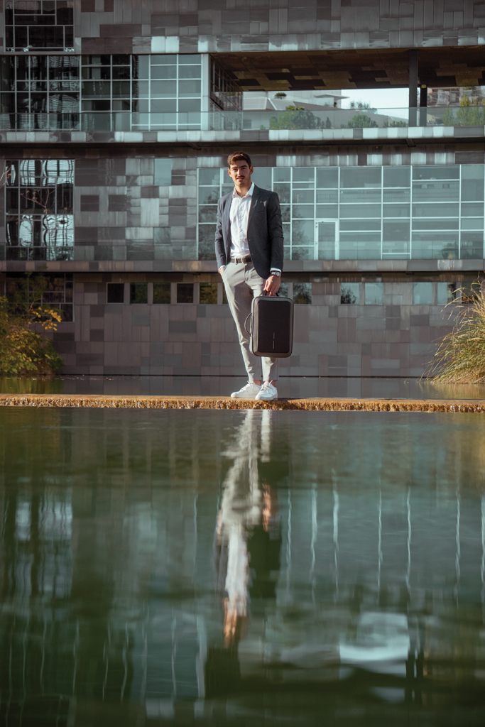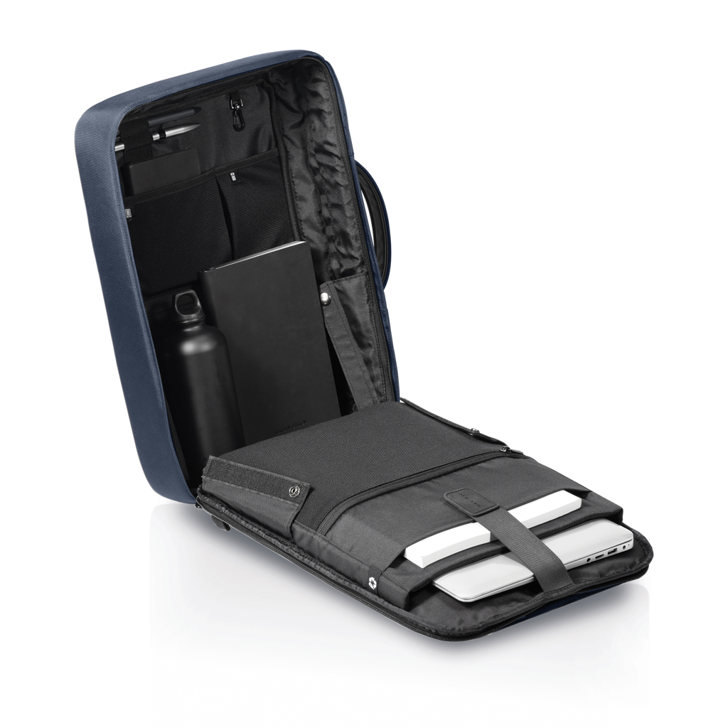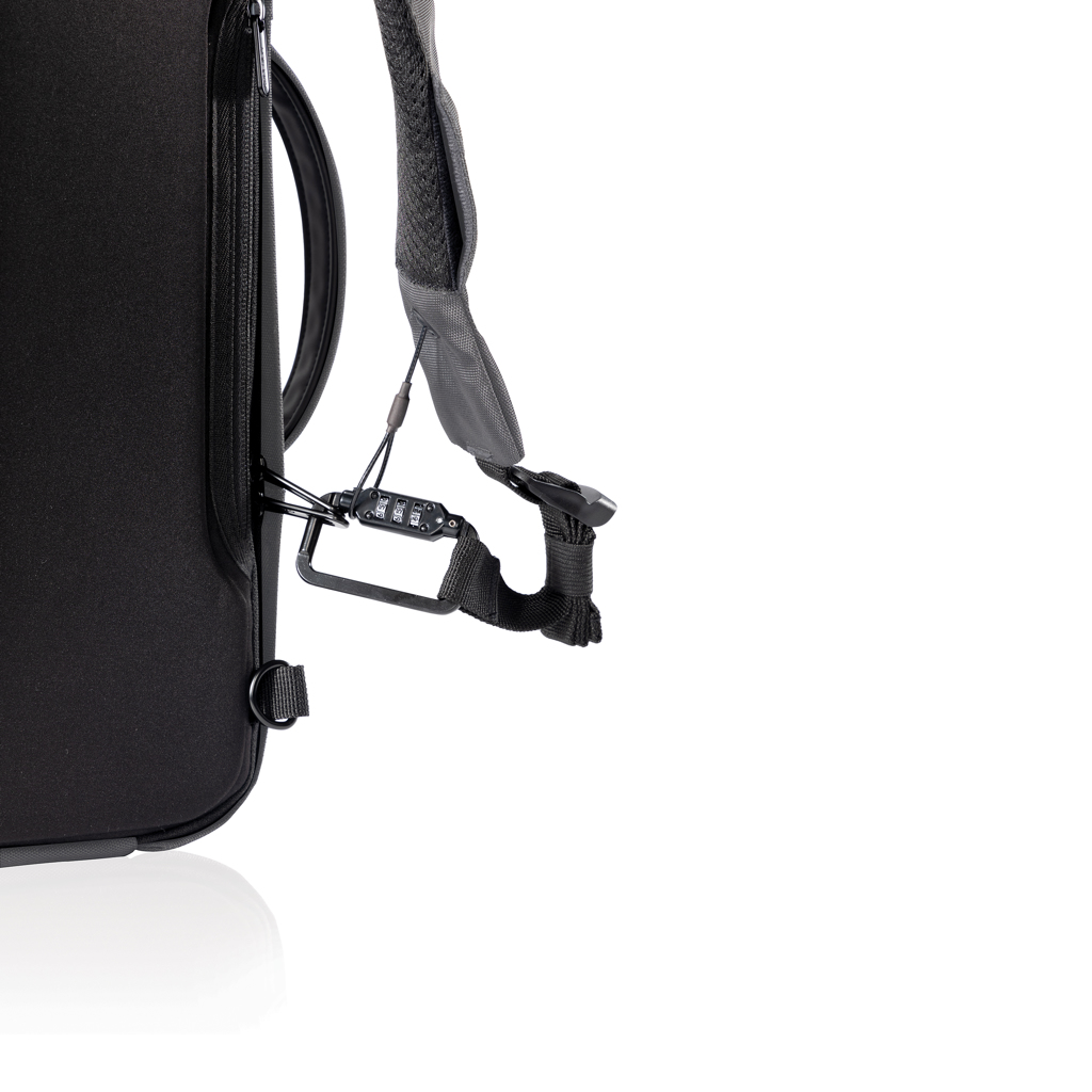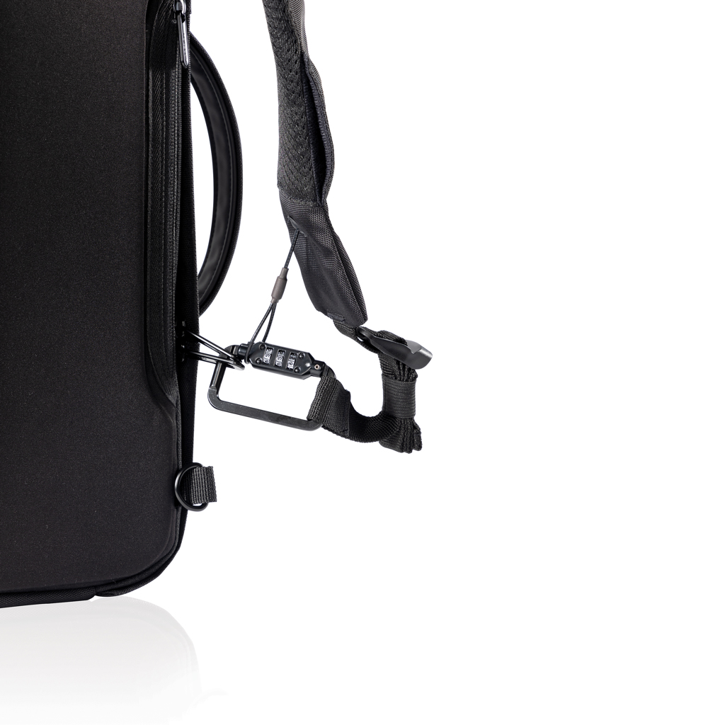 Bobby Bizz 2.0 kombinira ruksak i poslovnu torbu u jednom elegantnom rješenju. Jednostavno se pretvara u aktovku spremanjem naramenica u stražnji pretinac. Anti-theft dizajn sadrži skrivene patentne zatvarače, RFID zaštitu i materijal otporan na rezanje uz ugrađeni metalni okvir. Podstavljeni pretinci omogućuju sigurno spremanje laptopa do 16” i tableta. Dodatna sigurnost osigurana je integriranom bravom za pričvršćivanje na fiksne objekte. Izrađen je od recikliranog R-pet materijala s AWARE™ tehnologijom.