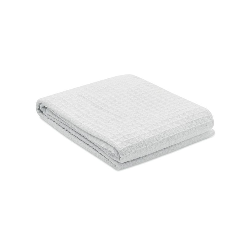 300 gr/m² lightweight cotton waffle blanket. Presented in white lid box.