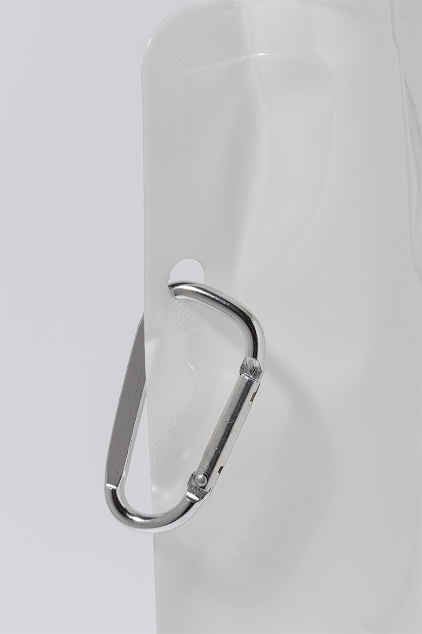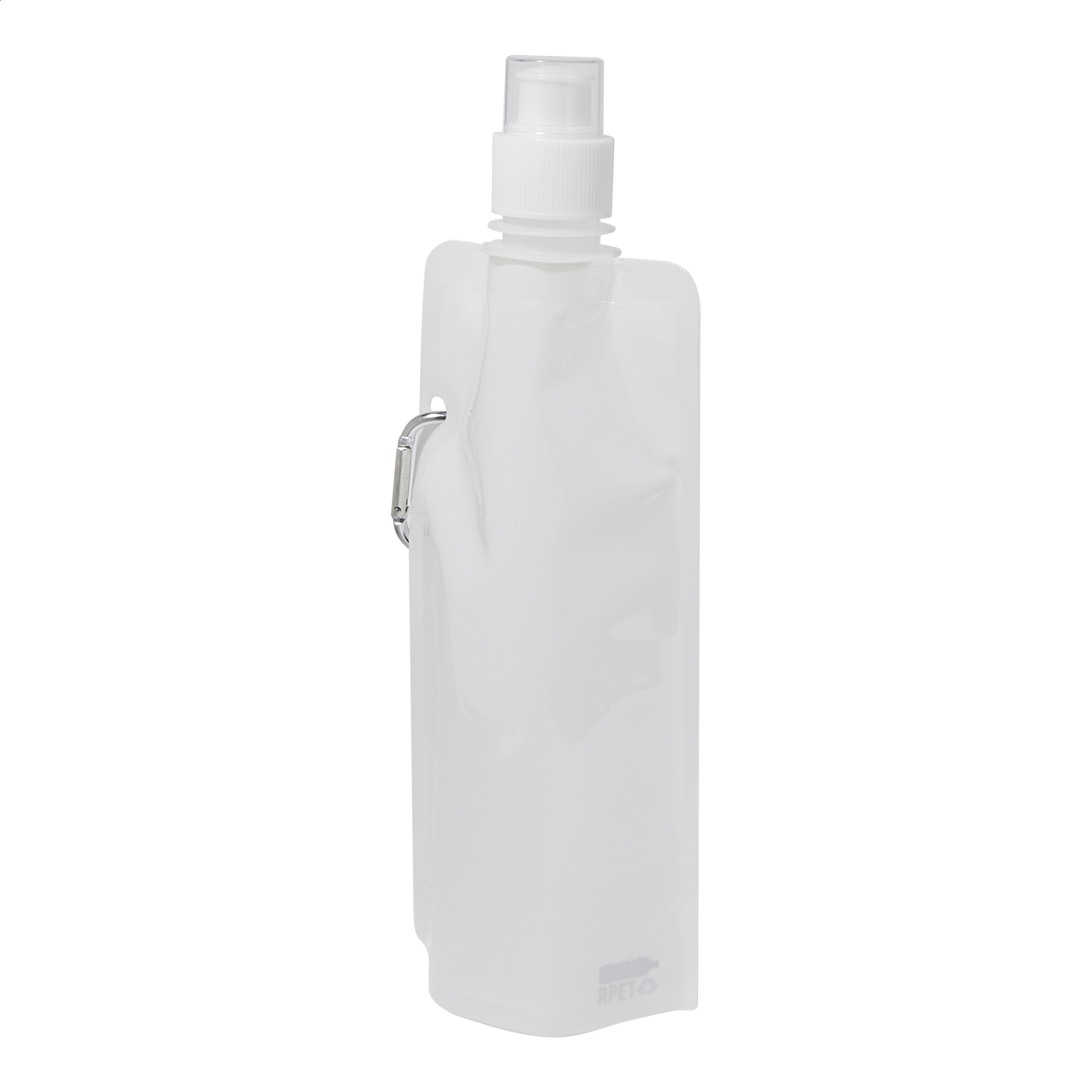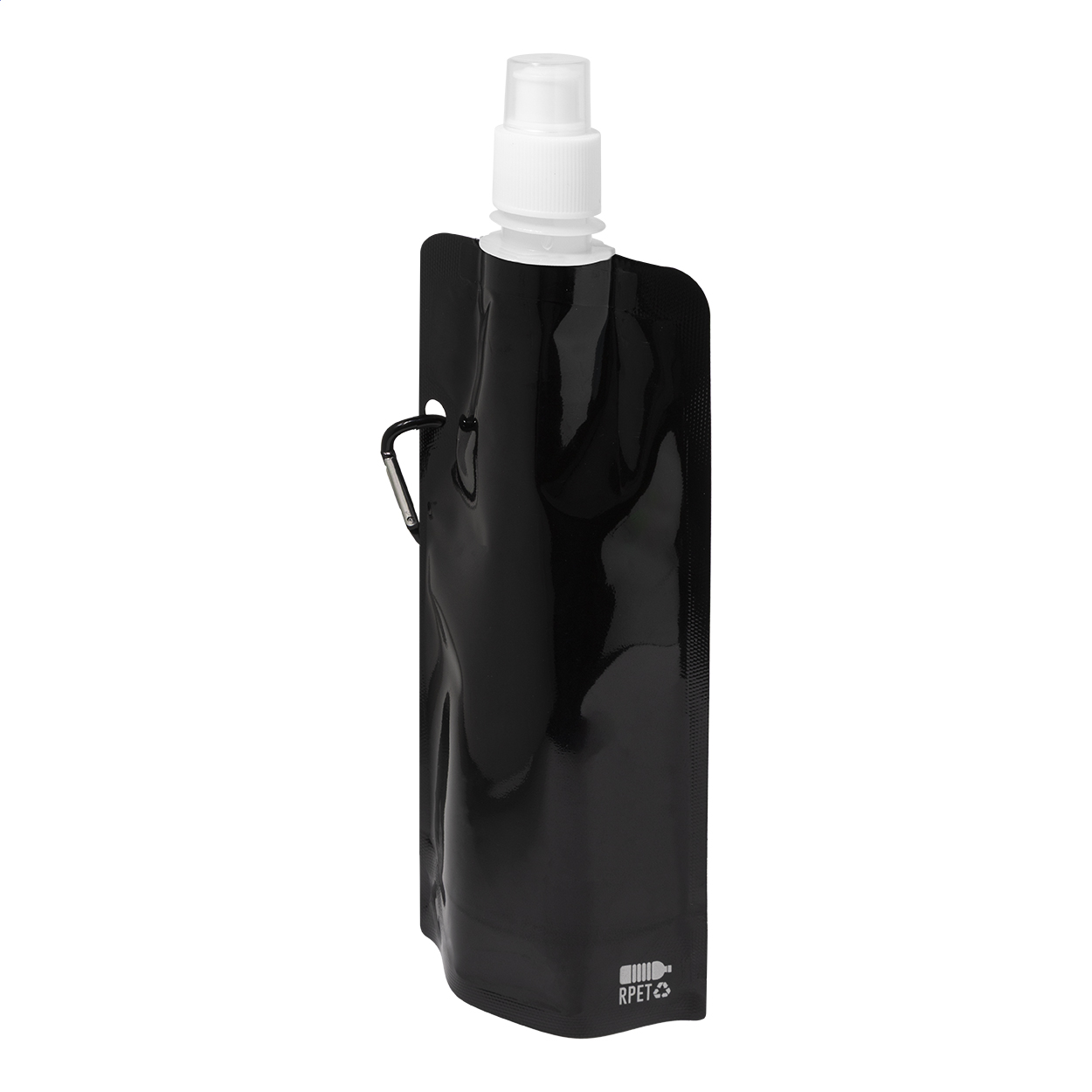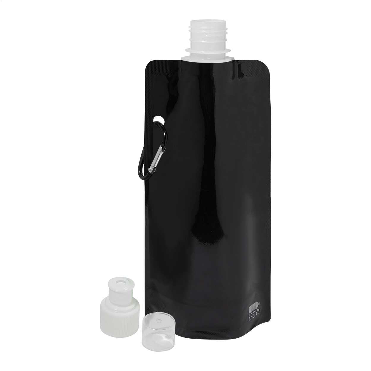 Foldable RPET sport bottle with drinking lid and aluminium carabiner, 500 ml. BPA-free. Not suitable for carbonated drinks.