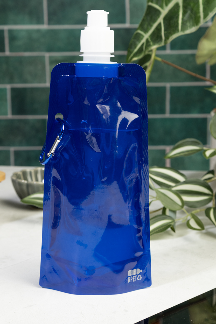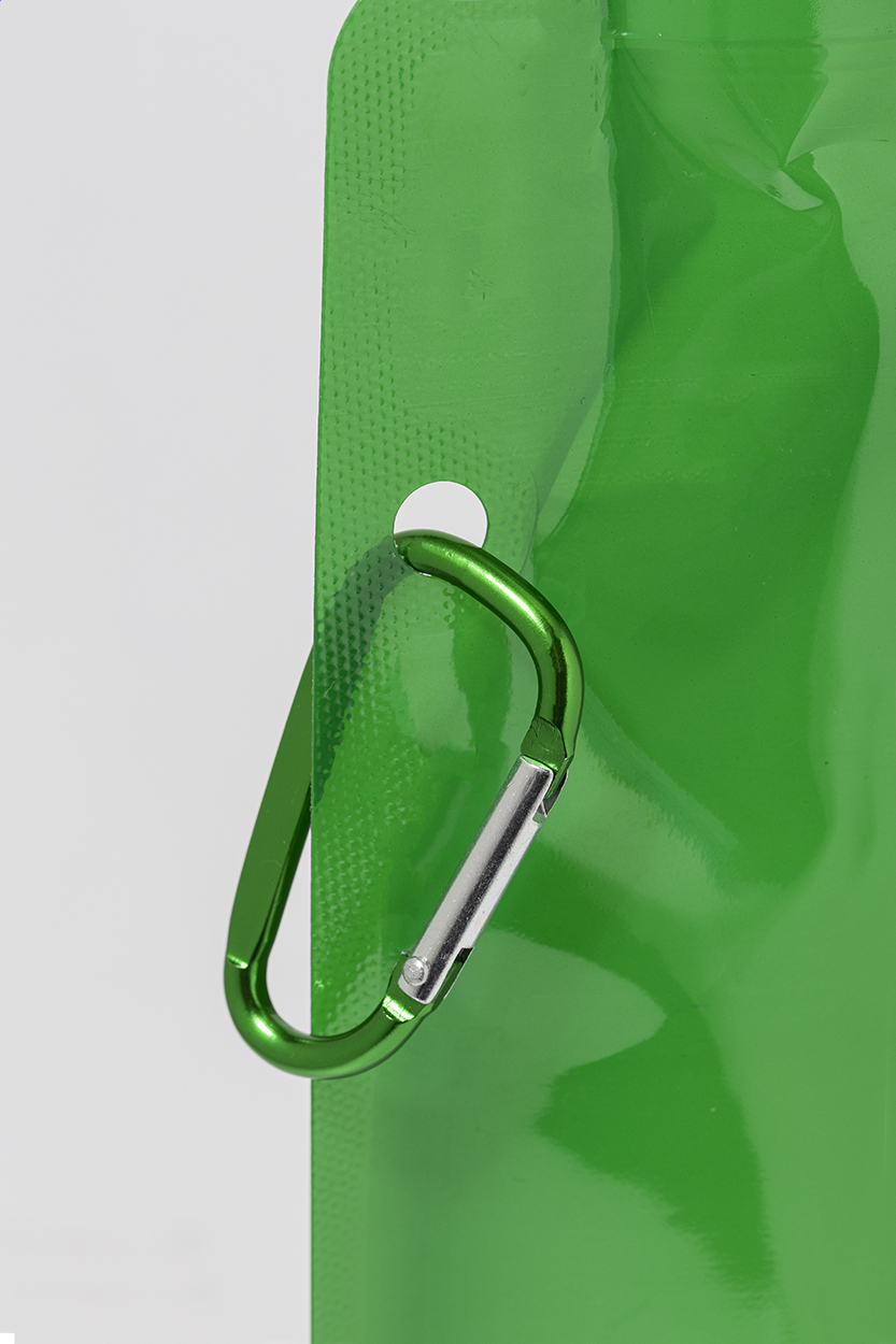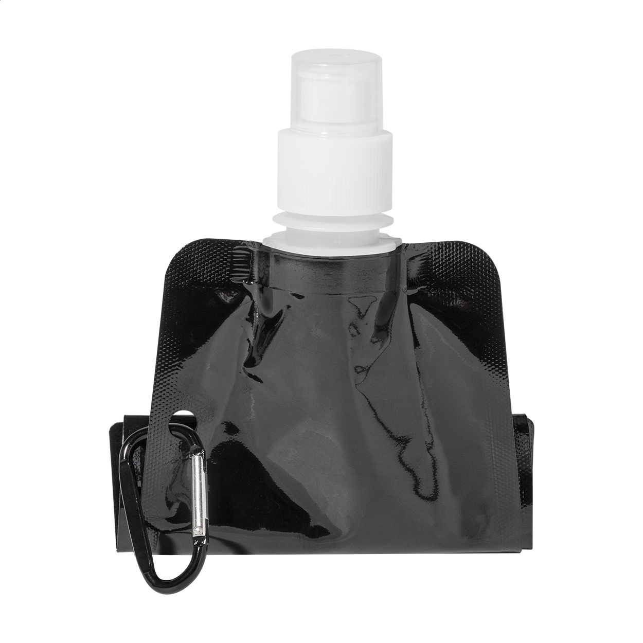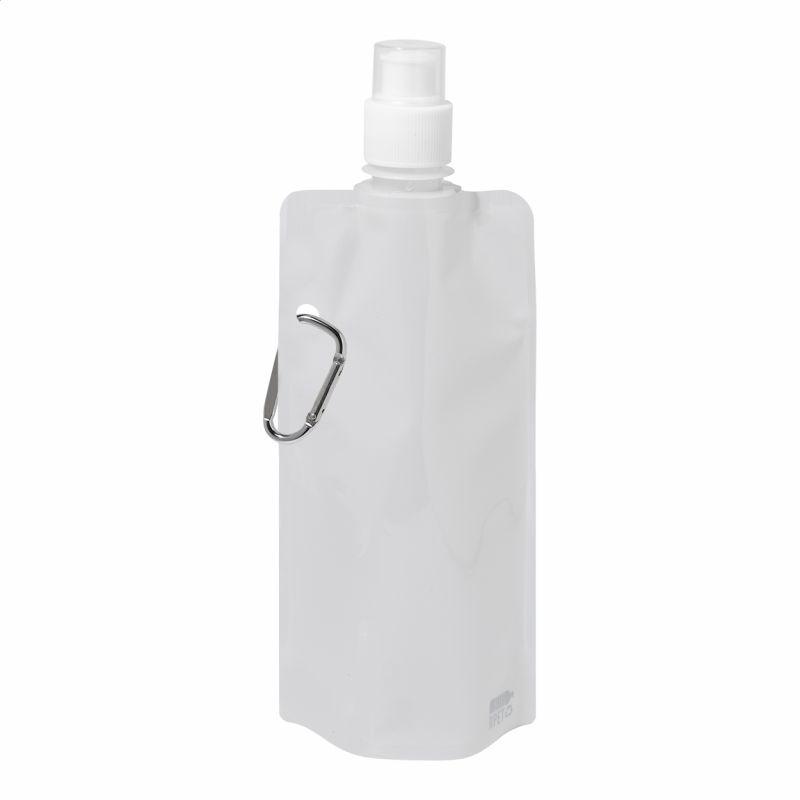 Foldable RPET sport bottle with drinking lid and aluminium carabiner, 500 ml. BPA-free. Not suitable for carbonated drinks.