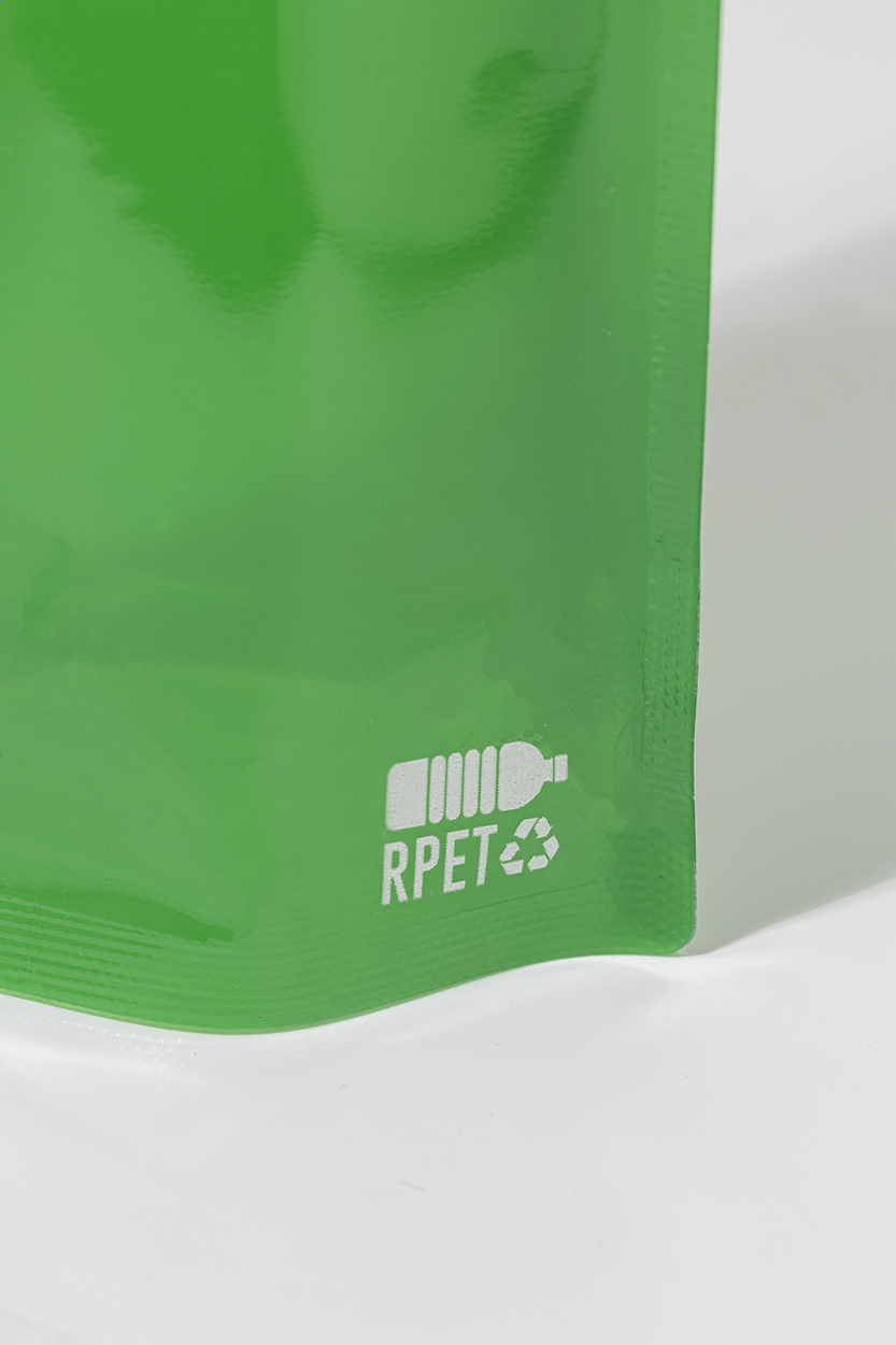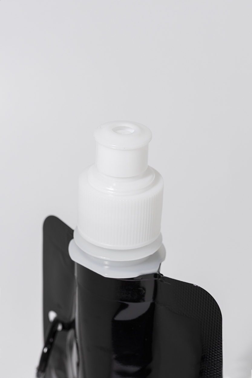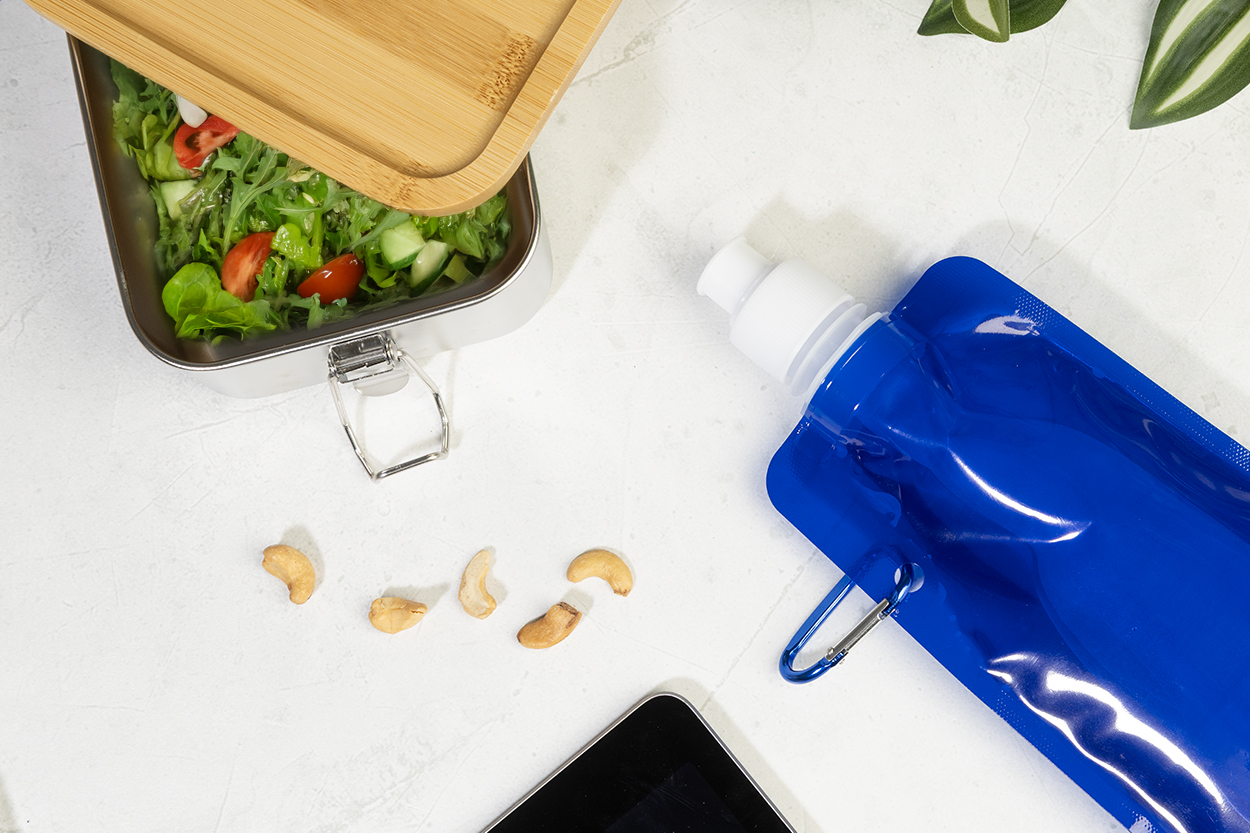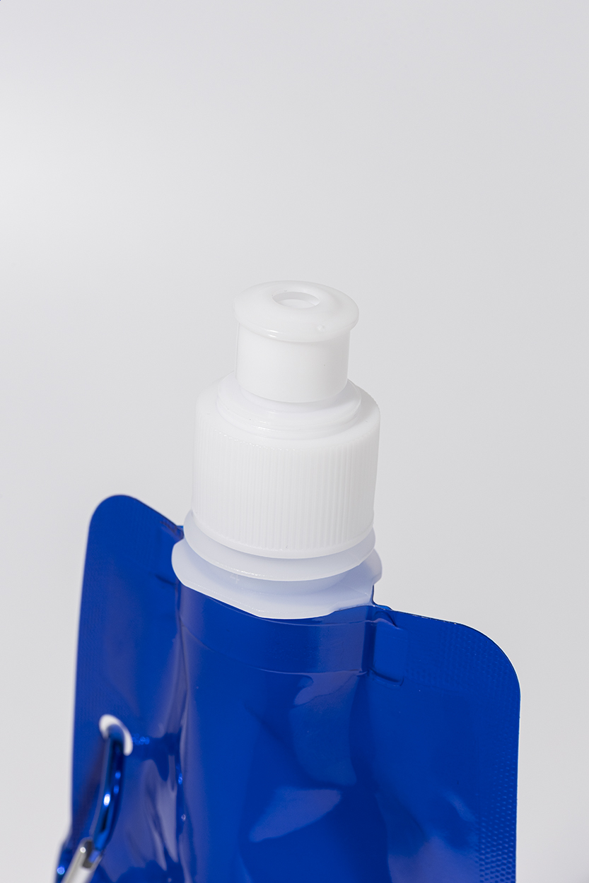 Foldable RPET sport bottle with drinking lid and aluminium carabiner, 500 ml. BPA-free. Not suitable for carbonated drinks.