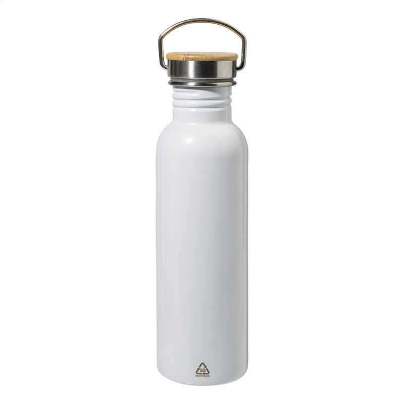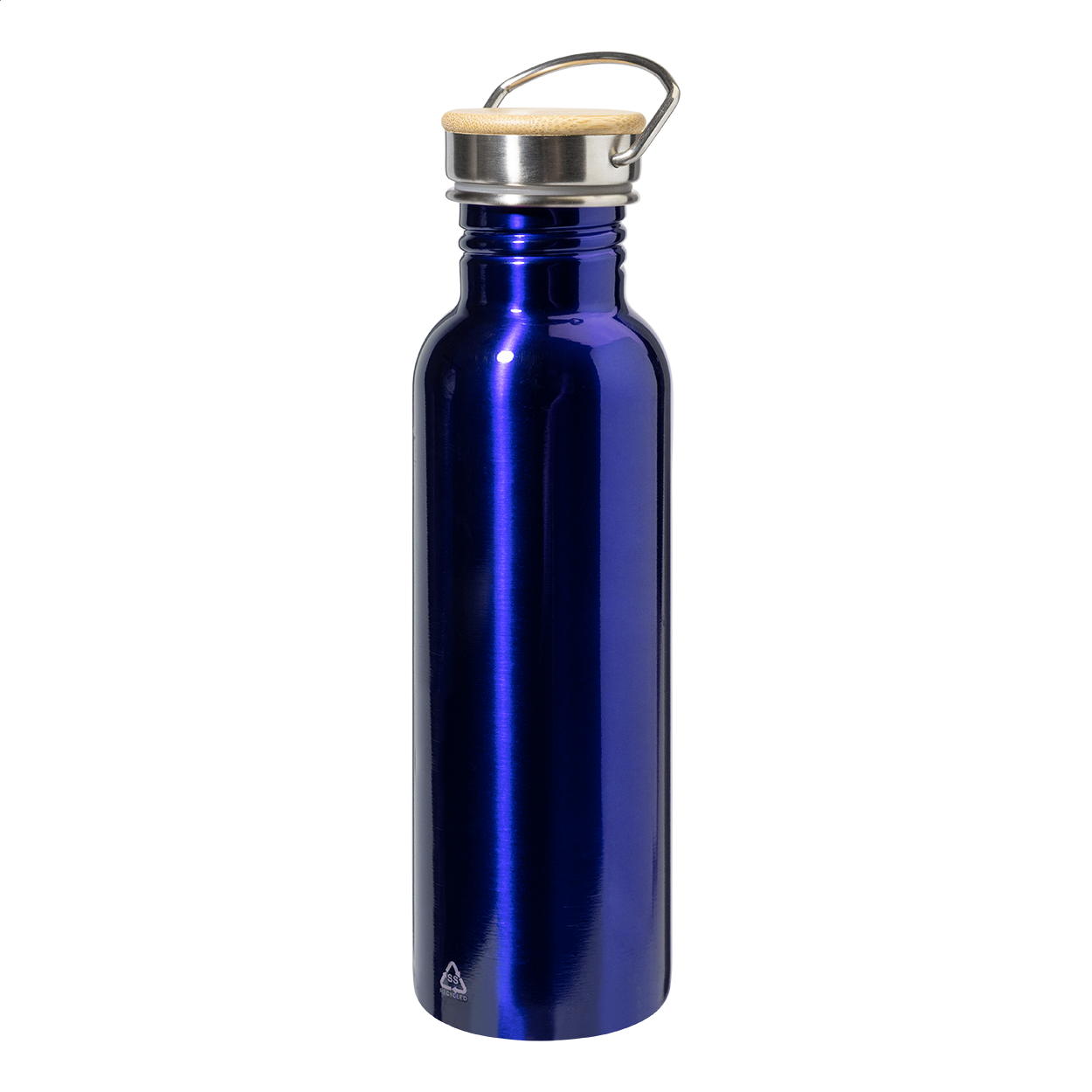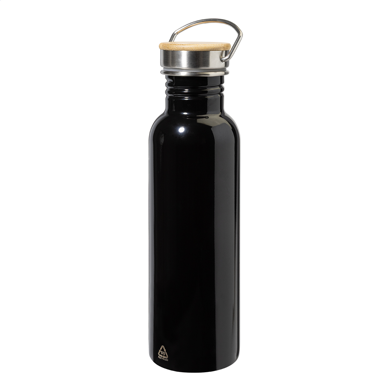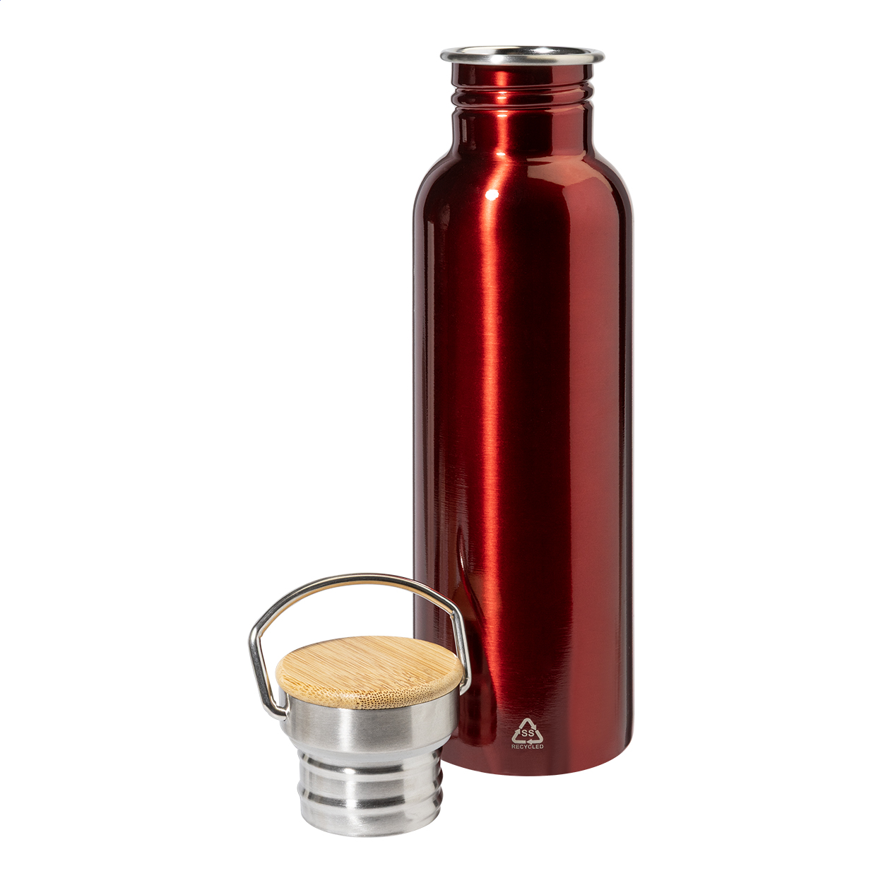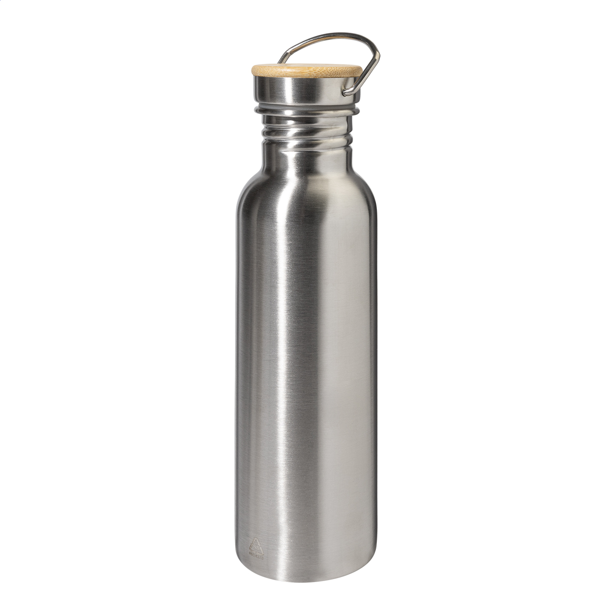 Recycled stainless steel bottle with bamboo carry lid, 750 ml.