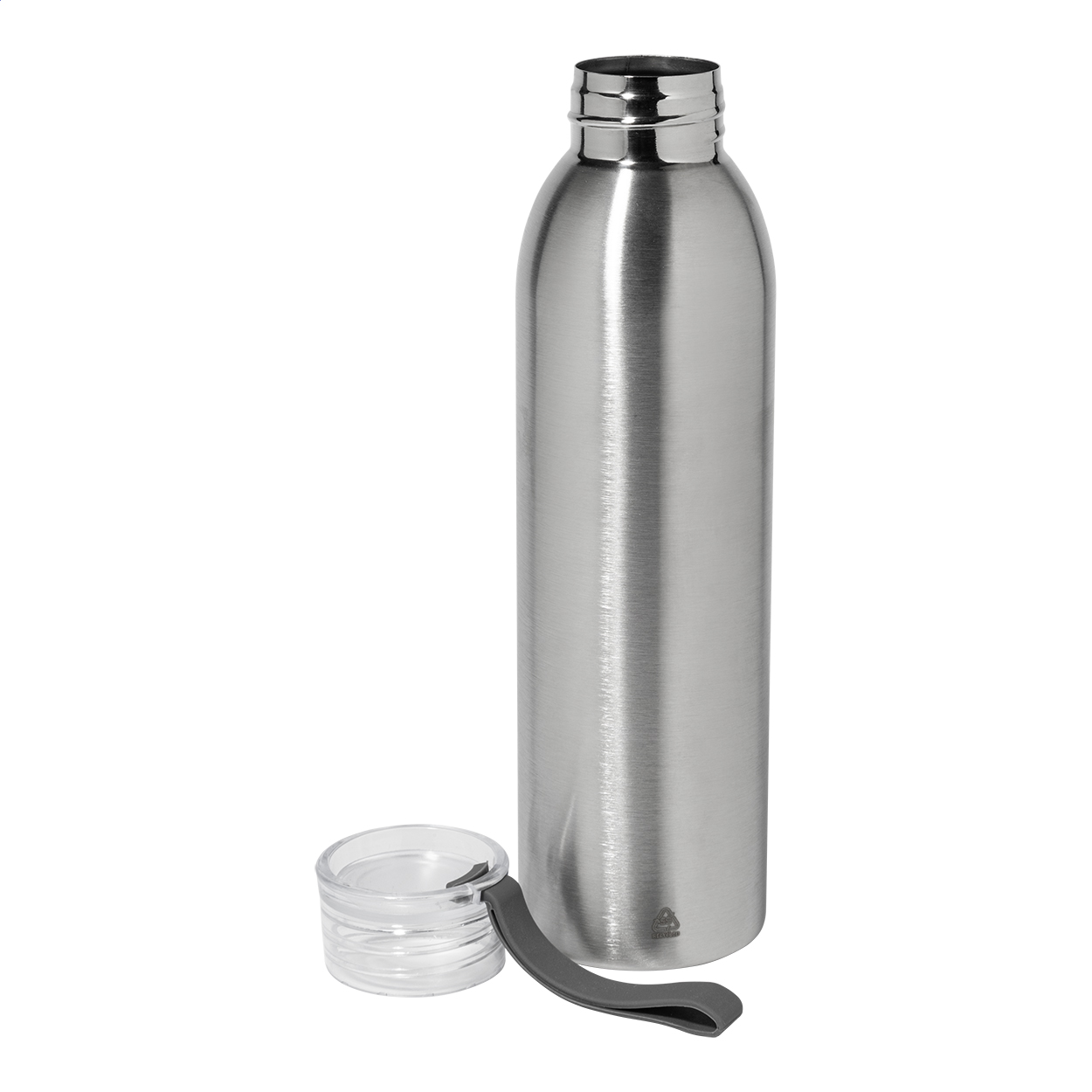 Recycled stainless steel bottle with PP lid and silicone carry strap, 600 ml.