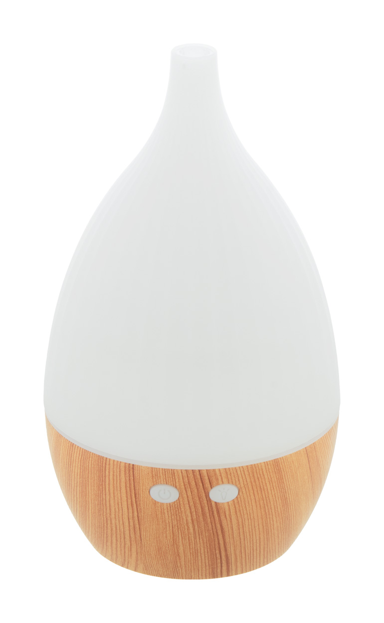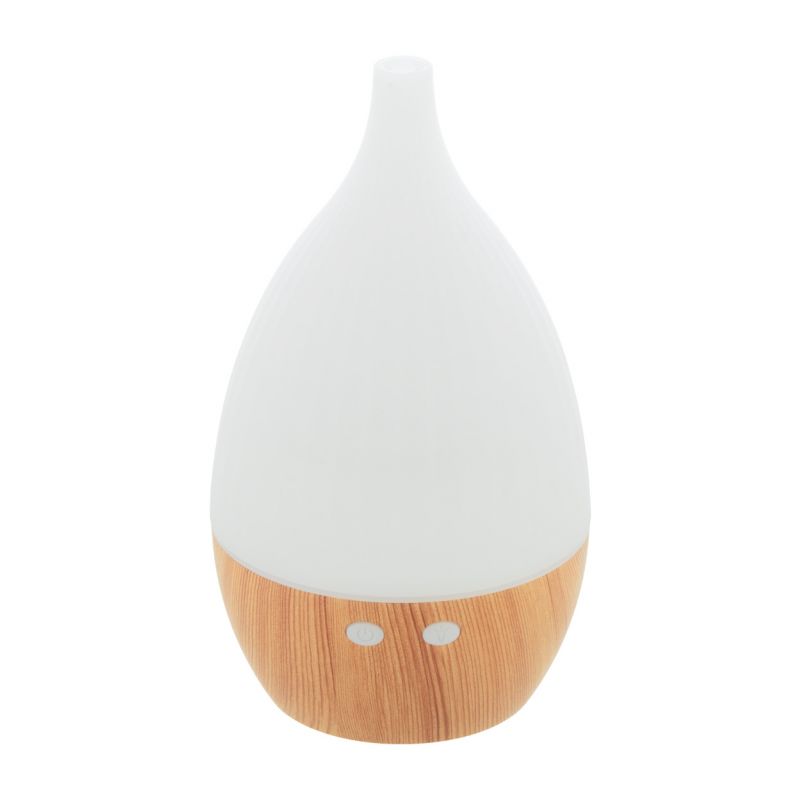 Recycled PP plastic desk humidifier with wooden pattern and multicolour LED light. Including USB charger cable. Tank capacity: 120 ml.