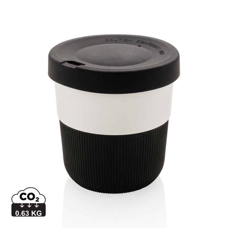 Održiva alternativa tradicionalnim šalicama! Unoseći stil i praktičnost u vaše jutarnje putovanje na posao, ova PLA šalica za kavu idealna je za prijevoz vašeg omiljenog toplog napitka. Proizveden od biljnog materijala (PLA), tako da nije samo moderan nego i ljubazan za planet. Dolazi sa silikonskom ručkom i poklopcem za vašu udobnost. Praktično se uklapa ispod većine aparata za kavu. 100% bez melamina. Kapacitet 280ml.