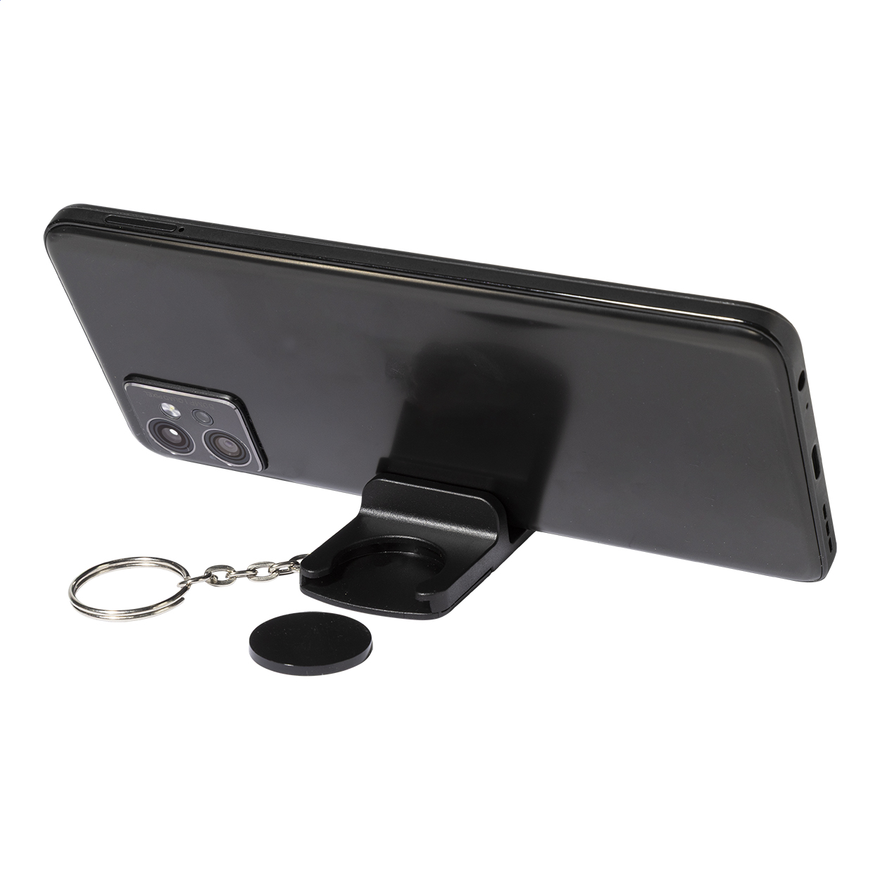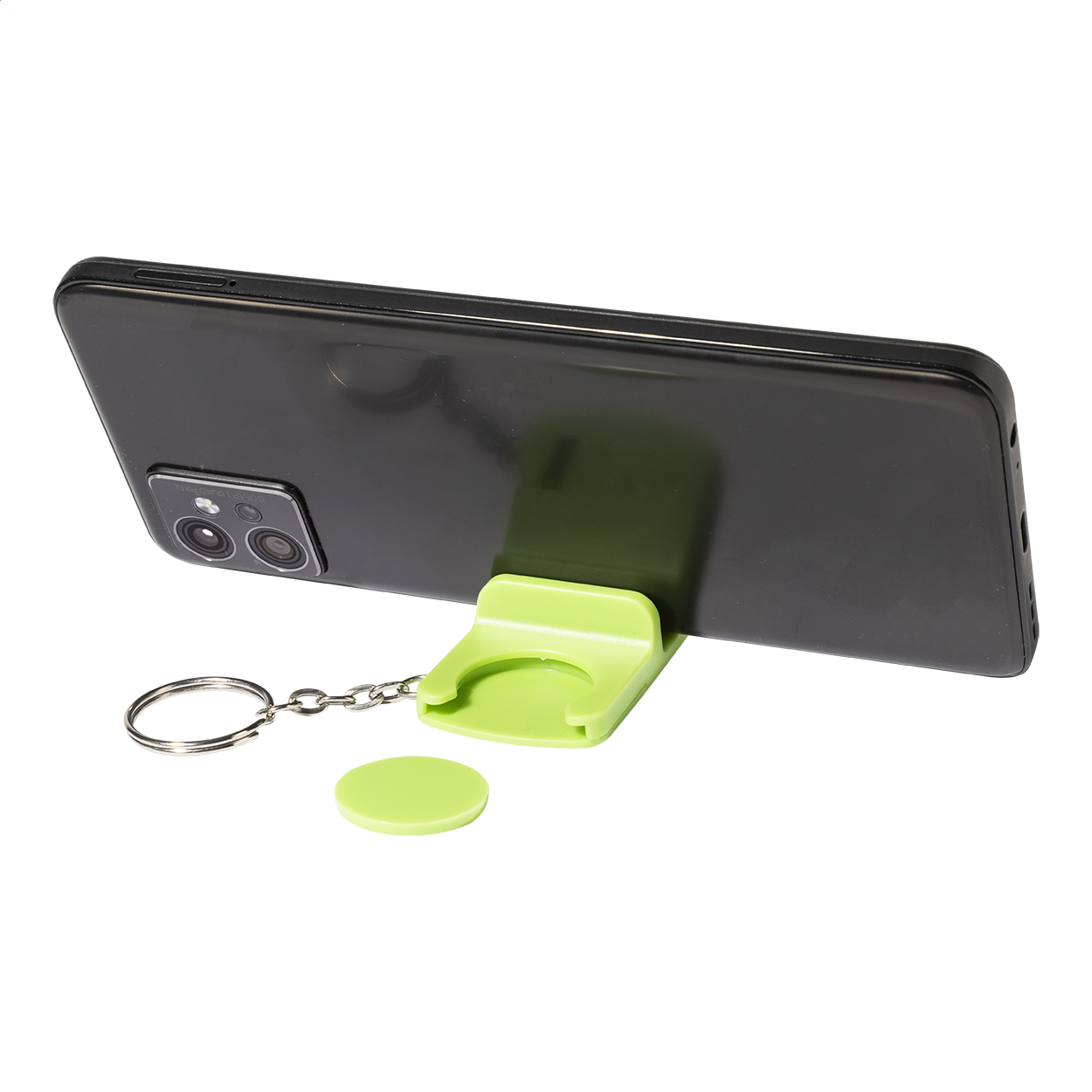 Recycled ABS trolley coin keyring with mobile holder. Coin size: ø23×2 mm.