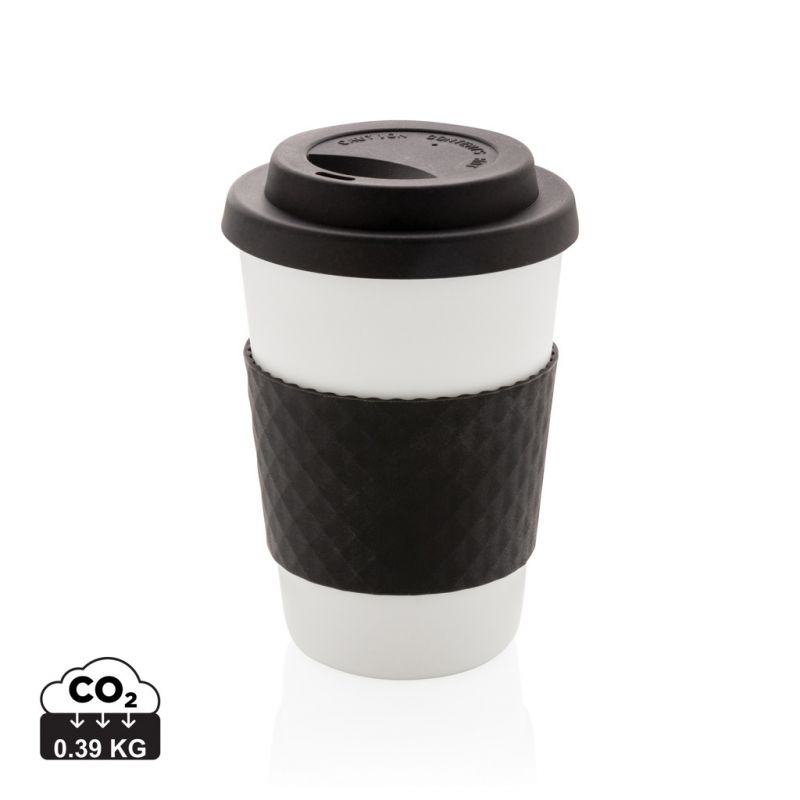 Zaustavite jednokratnu upotrebu! Ponesite svoju šalicu i pridružite se revoluciji ponovne upotrebe kako biste mogli doprinijeti svijetu bez jednokratne upotrebe. Ove lagane i izdržljive šalice savršeno su prilagođene za nošenje kave u pokretu. Ove čaše se mogu ponovno koristiti i izrađene su od PP materijala koji se 100% može reciklirati. Odobreno za hranu od 100 stupnjeva Celzijusa. Sa silikonskim poklopcem i rukavom. Može se prati u perilici posuđa i mikrovalnoj pećnici. Praktično se uklapa ispod većine aparata za kavu. Sadržaj: 270ml.
