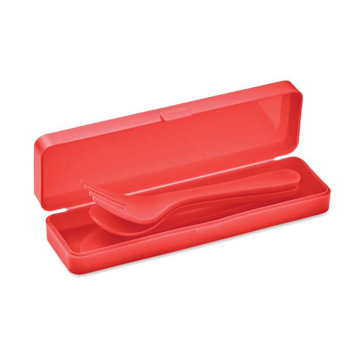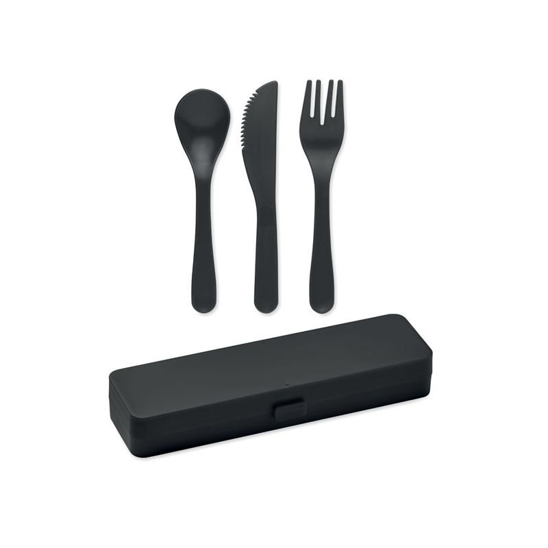 Višekratni PP prijenosni pribor za jelo i torbica. Uključuje žlicu, vilicu i nož.