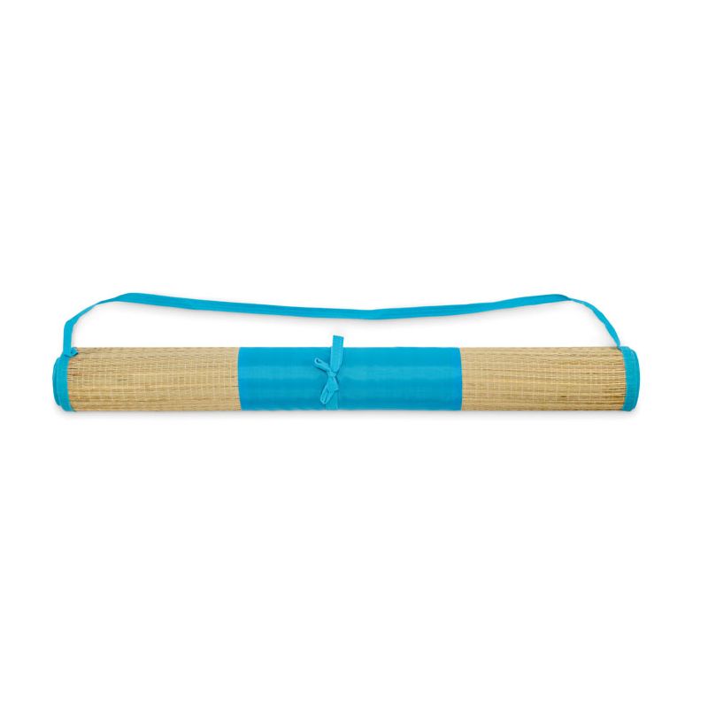 Prostirka za plažu od prirodne slame, rolo izvedba, s poliesterskom trakom za nošenje.