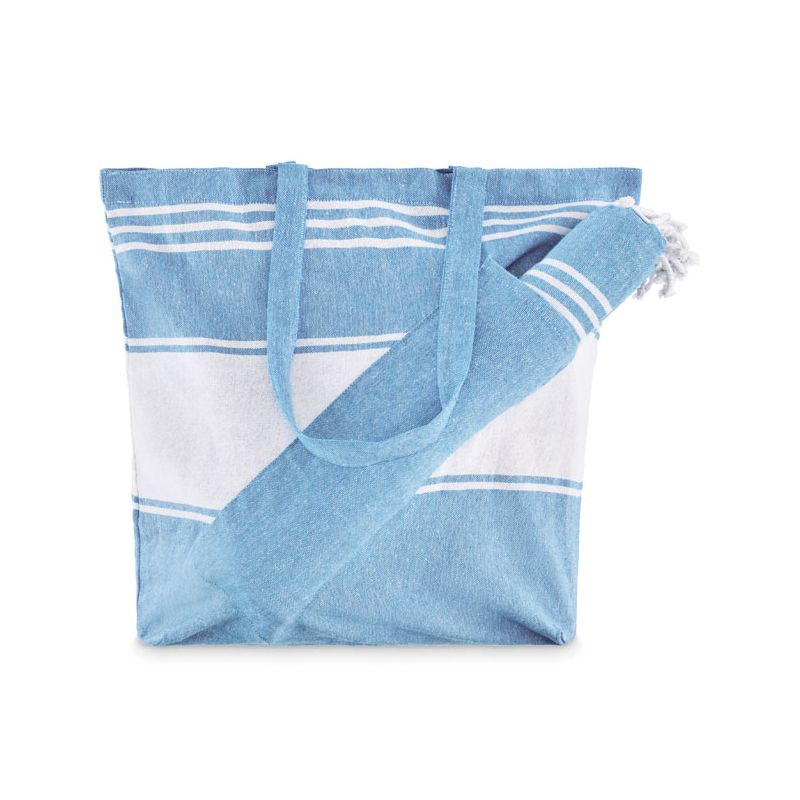 Set hammam ručnika za plažu s torbom. 70 % pamuk i 30 % poliester, 180 g/m².