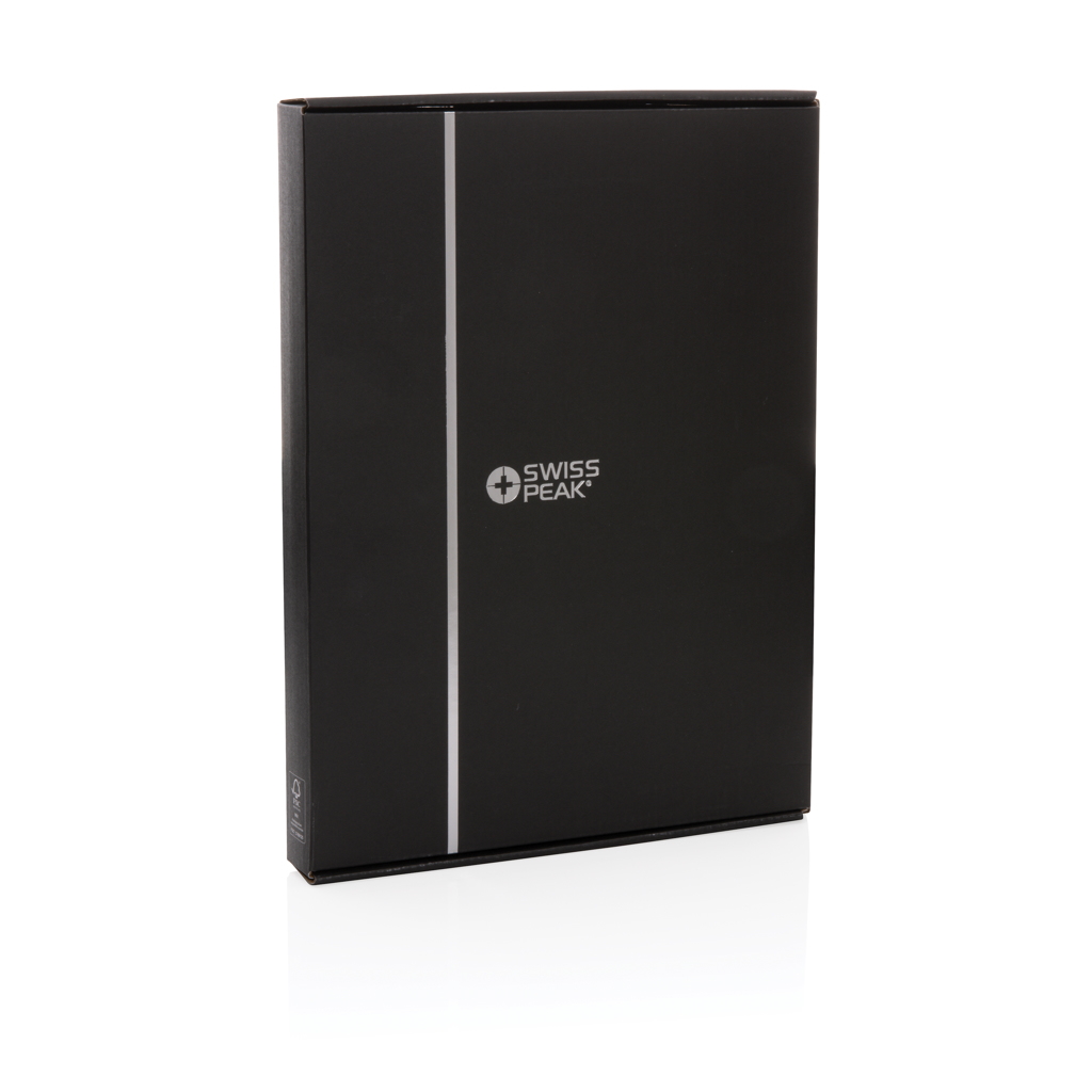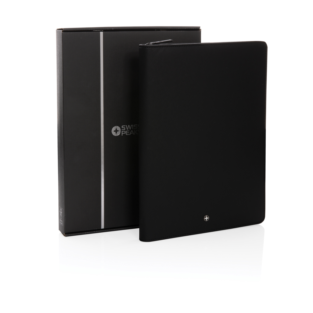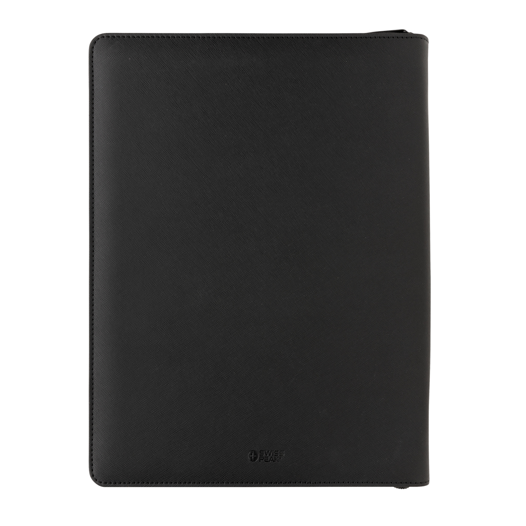 Kolekcija Swiss Peak Heritage govori jezikom moderne elegancije. Predstavljen u legendarnoj talijanskoj navlaci od recikliranog PU s patentnim zatvaračem. Unutrašnjost sadrži stalak za tablet/telefon, držače za gadgete, utore za posjetnice, navlake za vaše bilješke i papire plus petlju za olovku. S blokom za bilješke od 20 listova A4 kamenog papira. portfelj je izrađen od recikliranih materijala s certifikatom RCS (Recycled Claim Standard). RCS certifikat osigurava potpuno certificirani opskrbni lanac recikliranih materijala. Napravljen od 100% recikliranog recikliranog PU s certifikatom RCS. Ukupni reciklirani sadržaj: 9% na temelju ukupne težine predmeta. Bez PVC-a
