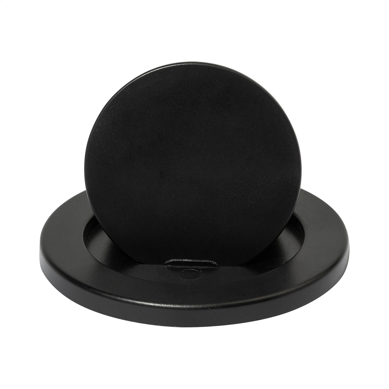 Magnetic mobile holder in recycled ABS. Including self-adhesive metal ring for phones without a magnetic surface.