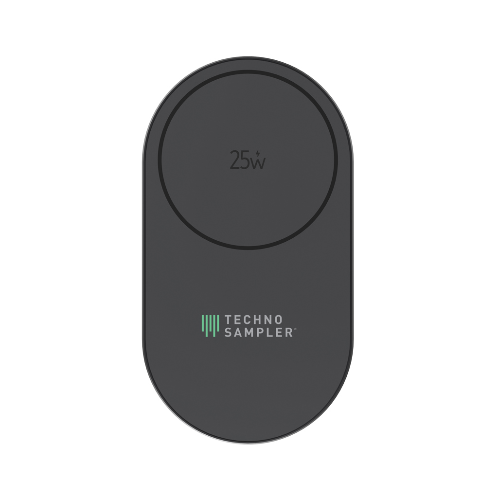 Sklopivi 3-u-1 magnetni bežični punjač snage 25 W omogućuje istovremeno punjenje pametnog telefona, Apple Watcha i slušalica. Visokoučinkovit sustav osigurava stabilno i učinkovito punjenje, uz naprednu zaštitu od pregrijavanja i preopterećenja. Kompaktan i sklopiv dizajn čini ga idealnim za putovanja i svakodnevnu upotrebu. Izrađen je od RCS certificiranog recikliranog ABS-a s 51 % recikliranog sadržaja, što ga čini vrhunskim promotivnim tehnološkim proizvodom i poslovnim poklonom.
