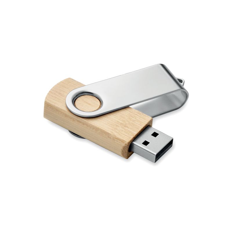 USB memorija 16 GB s kućištem od bambusa i zaštitnim metalnim poklopcem. Okrenite poklopac i spojite na USB priključak za korištenje.