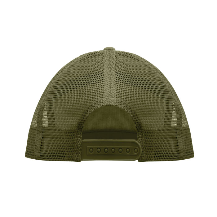 Kapa s ravnim šiltom i 7 panela od pamučnog twilla 235 g/m² s poliesterskom mrežicom na stražnjoj strani i plastičnim zatvaranjem.