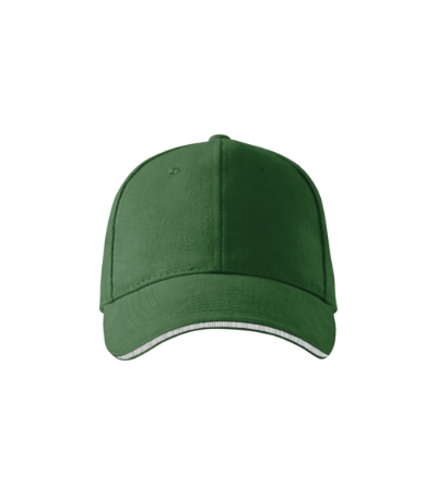 kroj sa šest panela, spojena dva prednja panela, prošiveni, lagano zaobljeni vrh sa kontrastnom trakom, prošivene rupe za zrak, znojna vrpca, veličina podesiva sa mjedenom kopčom