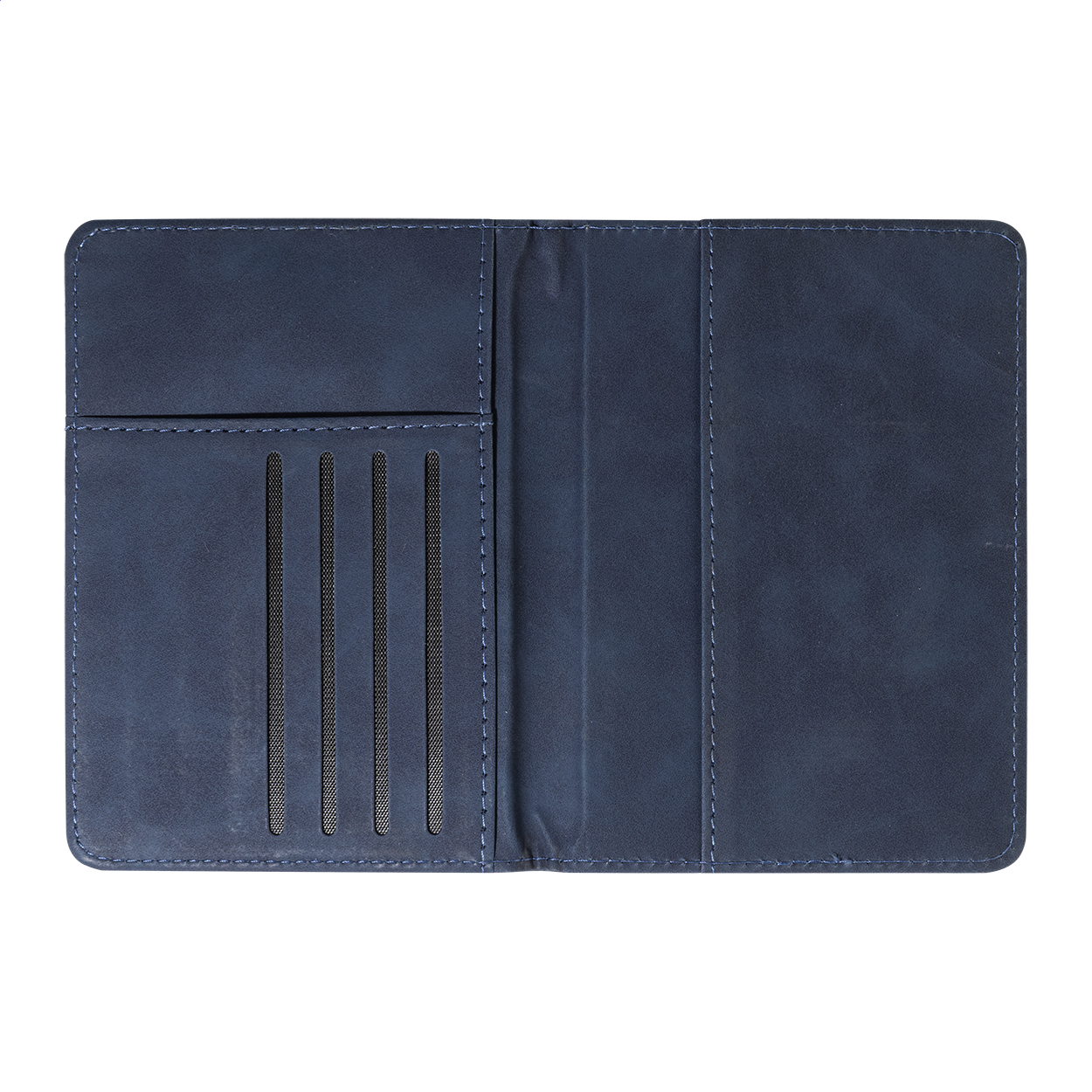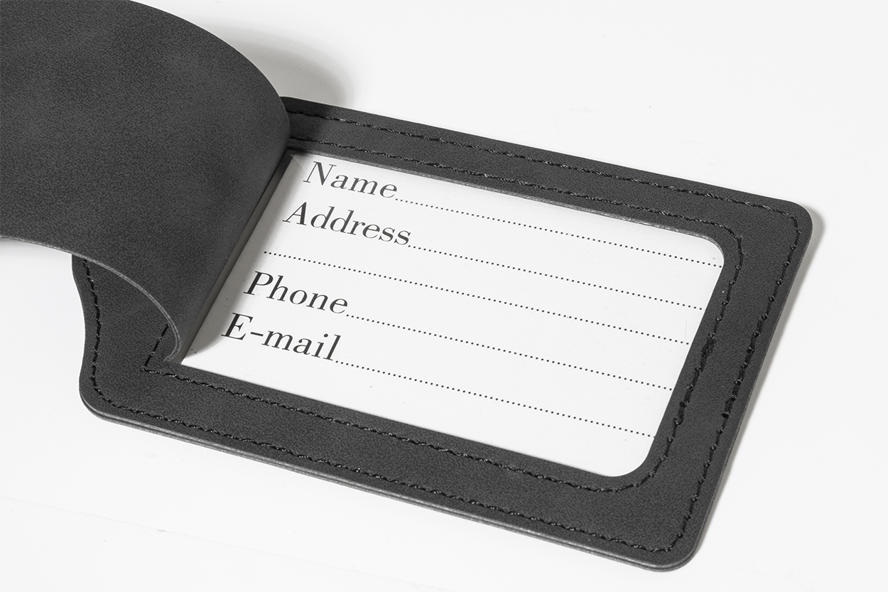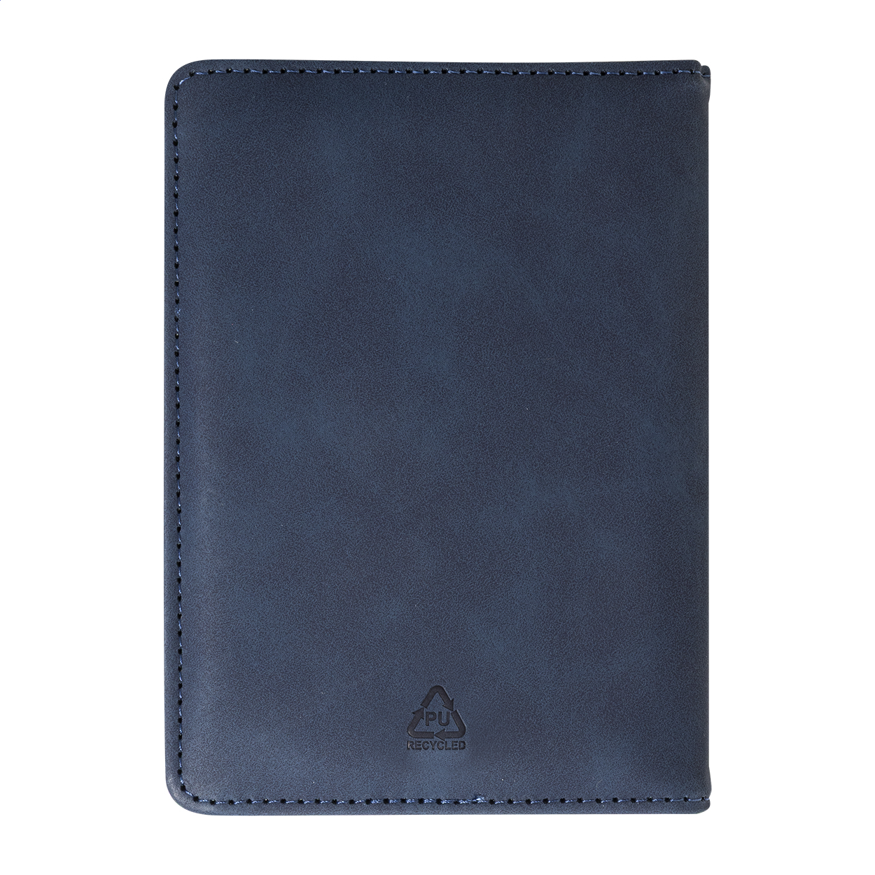 Recycled PU leather passport holder and luggage tag set. In kraft paper box.