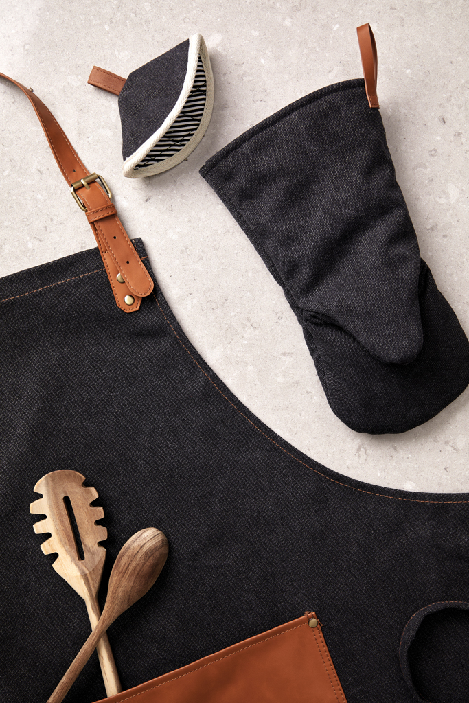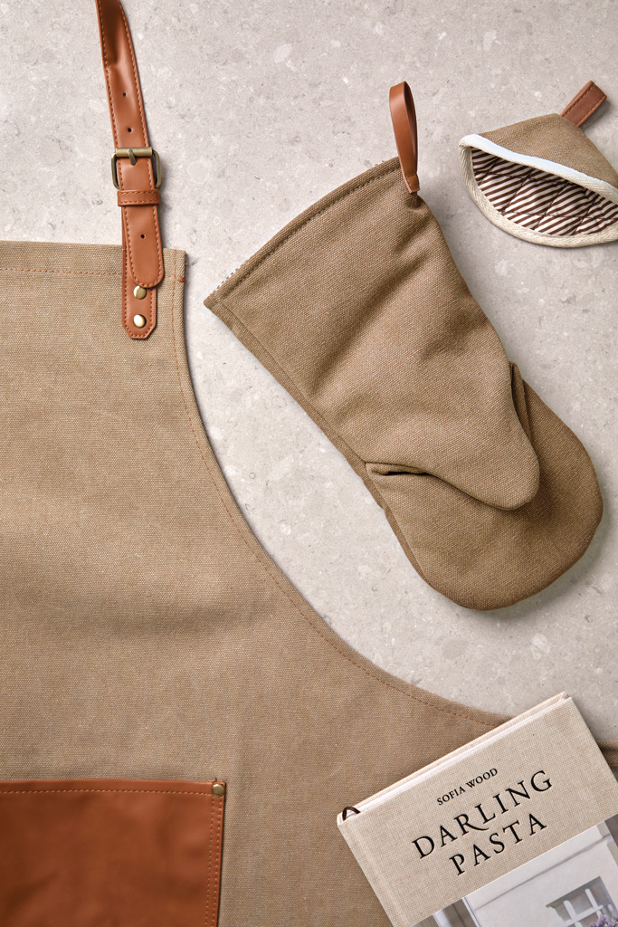 Praktična i elegantna pećnička rukavica od pamučnog platna. Izdašno podstavljen za zaštitu vaših ruku kada nosite topla jela iz kuhinje na stol. Elegantnu rukavicu za pećnicu možete objesiti u svoju kuhinju pomoću praktične kožne omče kada nije u upotrebi - spremna za hvatanje kad se spremate izvaditi vruće vruće jelo! Prikladno za desnoruke i ljevoruke korisnike.