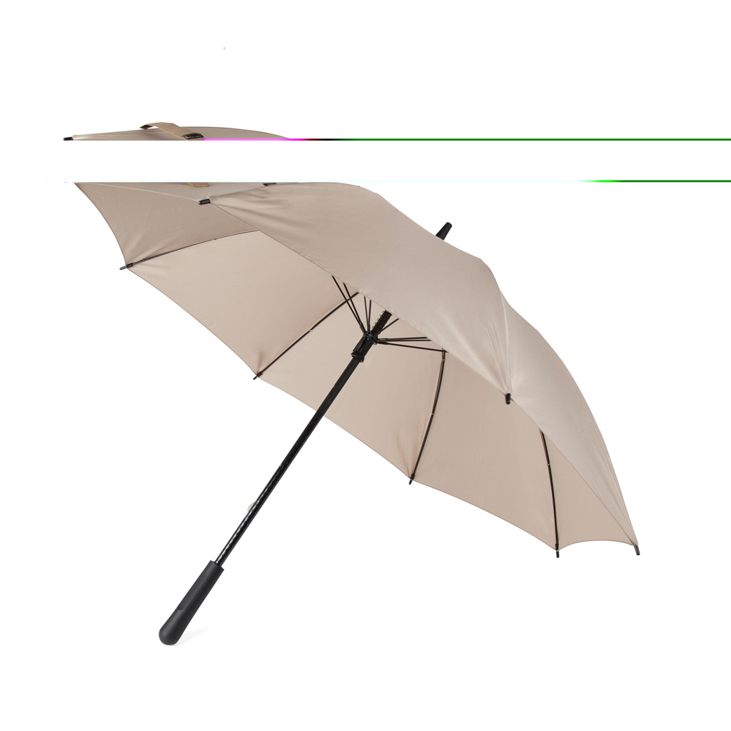 Ovaj moderan i moderan 23-inčni kišobran omogućit će vam da budete suhi i udobni čak iu najkišnijim danima. Izrađen od vrhunske 190T pongee RPET tkanine, pruža izvrsnu zaštitu od kiše dok se može pohvaliti elegantnim dizajnom. Dizajniran s metalnom osovinom i punim okvirom od stakloplastike, ovaj kišobran osigurava snagu i izdržljivost u teškim vremenskim uvjetima. Ravna minimalistička ABS plastična ručka, s udobnom gumenom završnom obradom, dodaje suvremeni štih i siguran zahvat. Sa sustavom automatskog otvaranja/ručnog zatvaranja za jednostavnu upotrebu i remenom za zatvaranje od klasične Baltimore PU tkanine spaja funkcionalnost sa stilom. S AWARE™ tehnologijom praćenja, ovaj kišobran potvrđuje istinsku upotrebu recikliranih materijala, naglašavajući našu predanost odgovornom odabiru izvora.