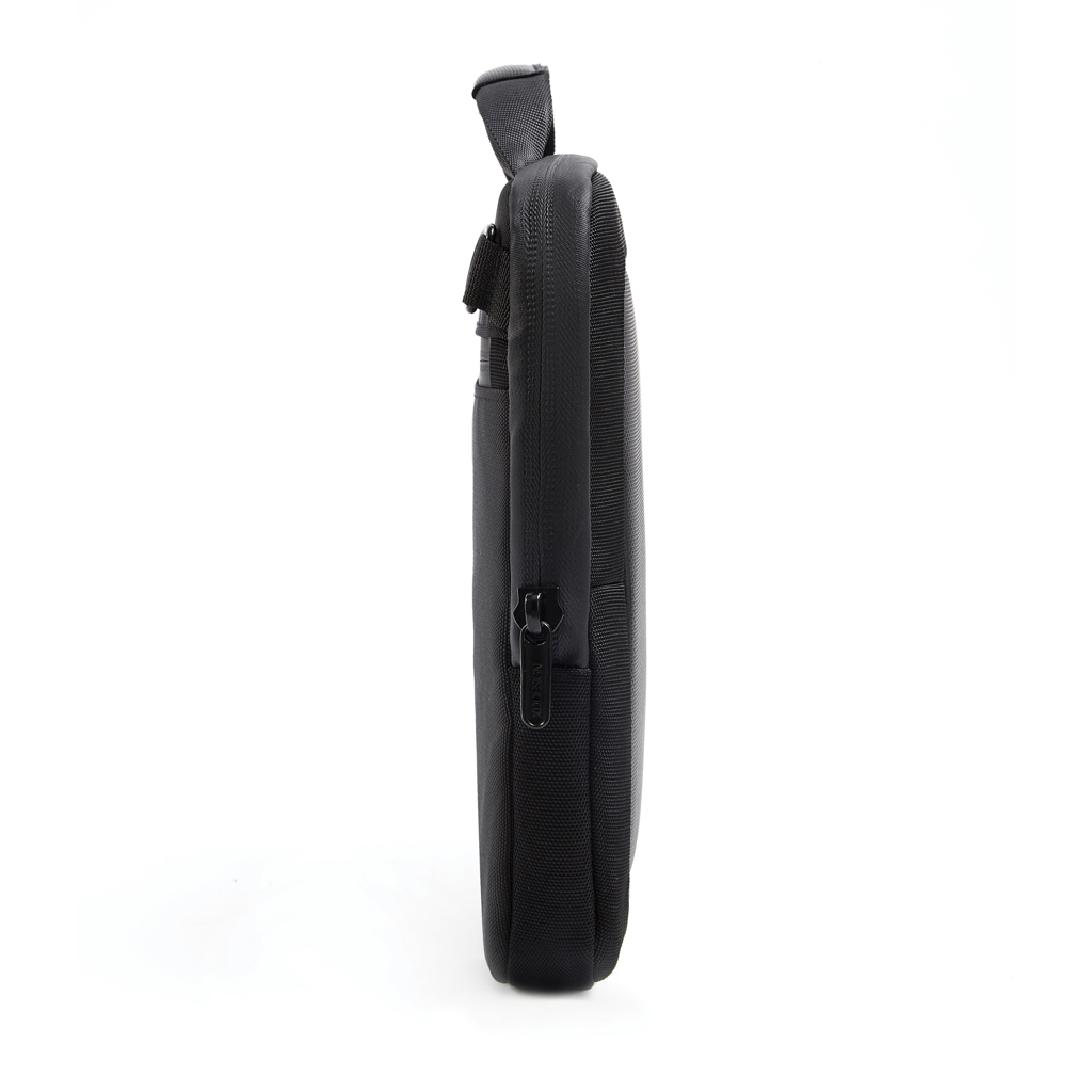 XD Design torba za laptop 16" pruža sigurnu zaštitu i praktičnost u svakodnevnom korištenju. Izrađena je od izdržljivog R-pet 1200D materijala i teksturiranog PU-a s vodoodbojnim završetkom. Podstavljena unutrašnjost štiti uređaj od ogrebotina, dok vodootporni patentni zatvarač osigurava dodatnu otpornost. Ručka i remen omogućuju različite načine nošenja, a stražnji džep pruža prostor za dodatke. Izrađena je od recikliranih materijala s AWARE™ tehnologijom.
